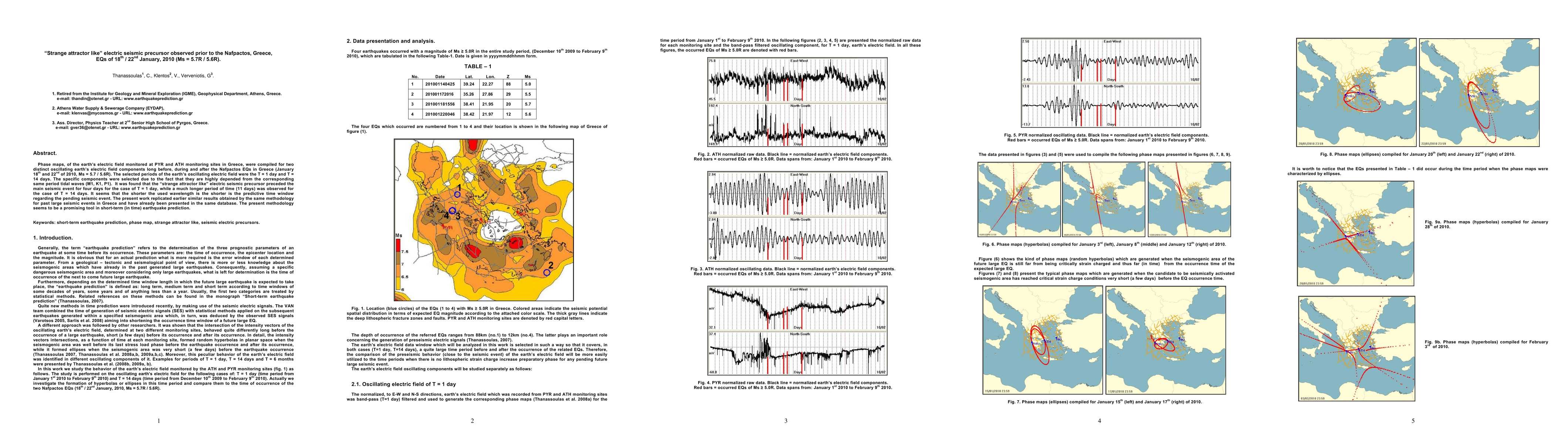 Phase maps, of the earth's electric field monitored at PYR and ATH monitoring sites in Greece, were compiled for two distinct oscillating earth's electric field components long before, during and after the Nafpactos EQs in Greece (January 18th and 22nd of 2010, Ms = 5.7 / 5.6R). The selected periods of the earth's oscillating electric field were the T = 1 day and T = 14 days. The specific components were selected due to the fact that they are highly depended from the corresponding same period tidal waves (M1, K1, P1). It was found that the "strange attractor like" electric seismic precursor preceded the main seismic event for four days for the case of T = 1 day, while a much longer period of time (11 days) was observed for the case of T = 14 days. It seems that the shorter the used wavelength is the shorter is the predictive time window regarding the pending seismic event. The present work replicated earlier similar results obtained by the same methodology for past large seismic events in Greece and have already been presented in the same database. The present methodology seems to be a promising tool in short-term (in time) earthquake prediction.