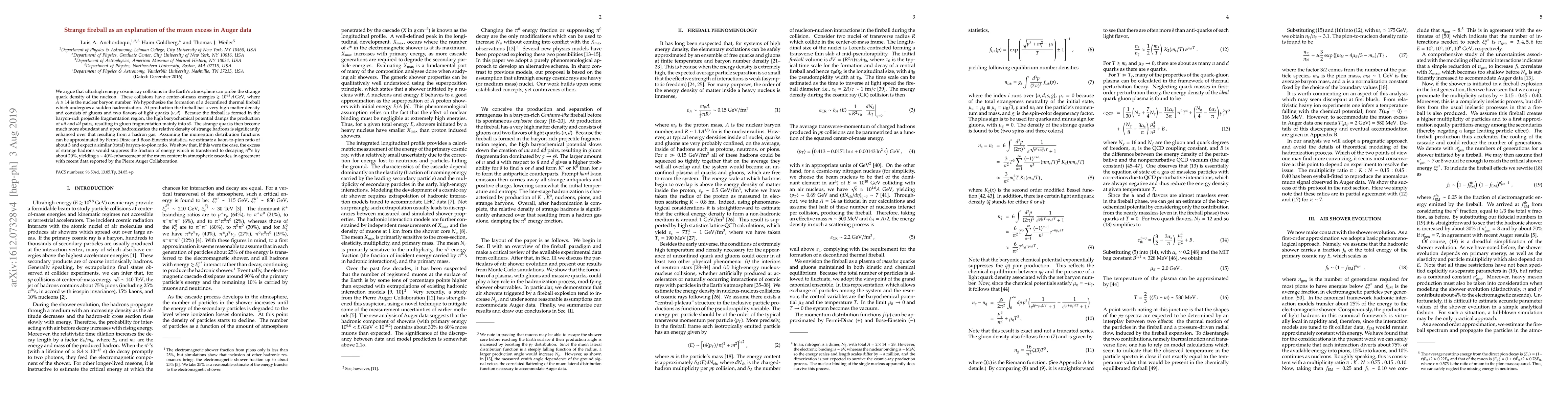 This paper hypothesizes that ultrahigh energy cosmic ray collisions in the Earth's atmosphere create a deconfined thermal fireball rich in strange quarks, which enhances the production of strange hadrons. This effect could explain the observed muon excess in the data from the Pierre Auger Collaboration, as the increased strange hadrons suppress the energy transferred to pions, boosting the muon content in atmospheric cascades.