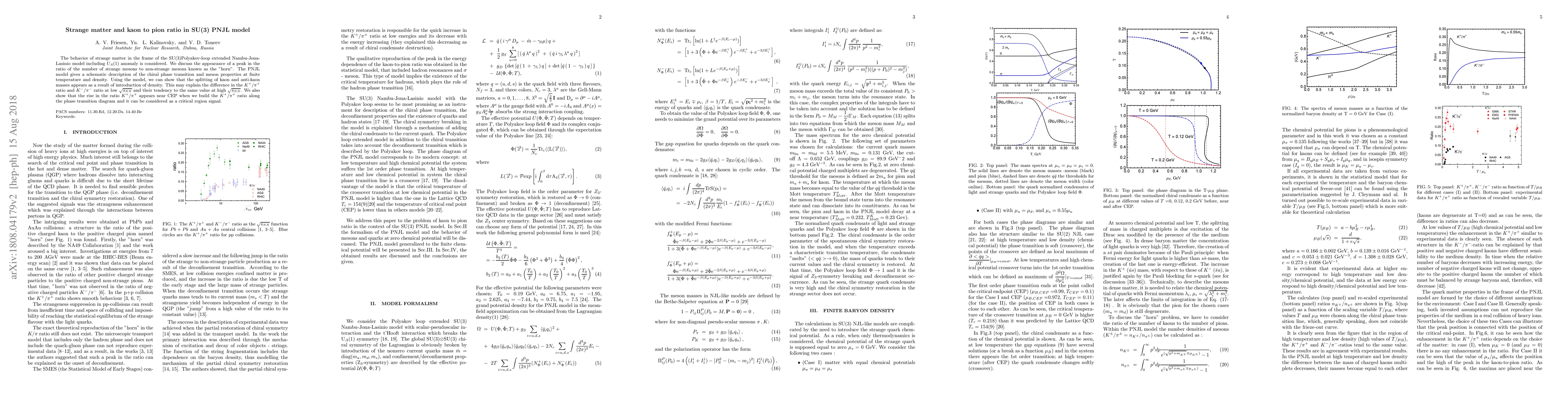 The paper presents a detailed analysis of strange matter and kaon-to-pion ratio using the SU(3) PNJL model, incorporating the $U_A(1)$ anomaly and providing a schematic description of the chiral phase transition and meson properties at finite temperature and density.