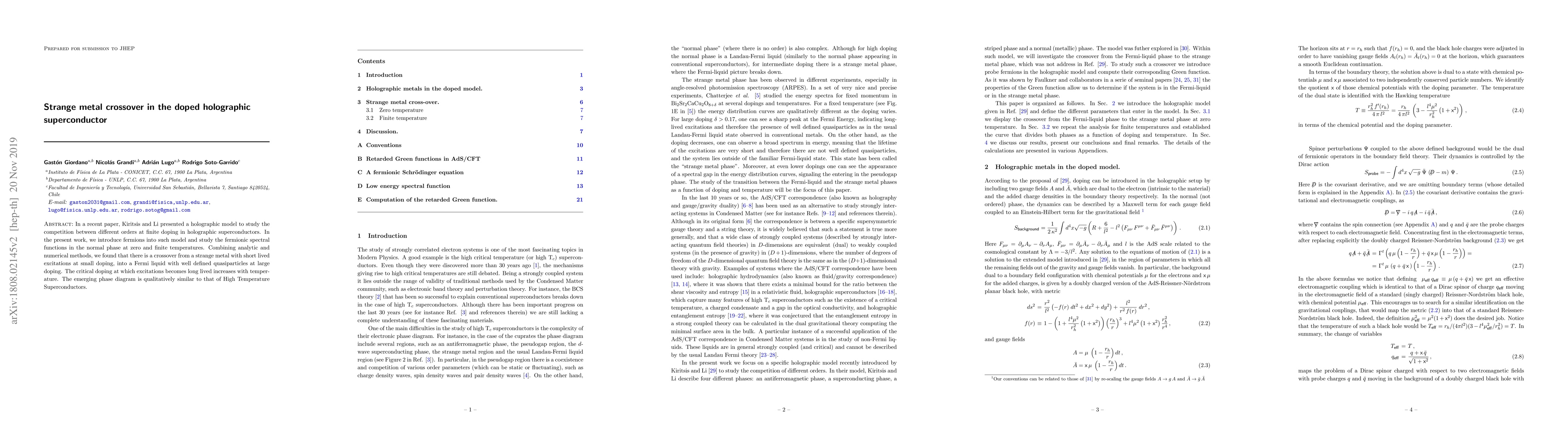 Researchers found a metal crossover in a holographic superconductor as doping increases, transitioning from short-lived excitations to well-defined quasiparticles at higher temperatures.