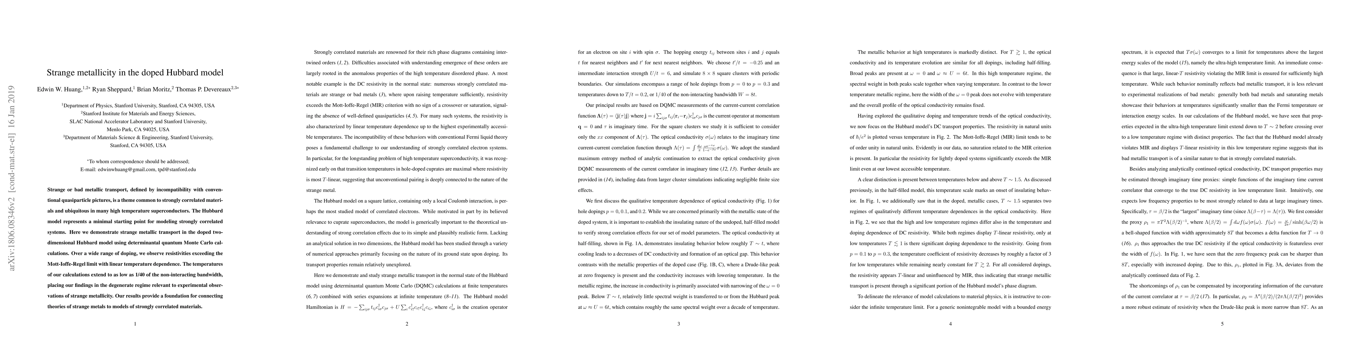 This paper demonstrates strange metallic transport in the doped two-dimensional Hubbard model using determinantal quantum Monte Carlo, showing resistivities exceeding the Mott-Ioffe-Regel limit with linear temperature dependence. These findings support a theoretical basis for understanding strange metals in strongly correlated materials.