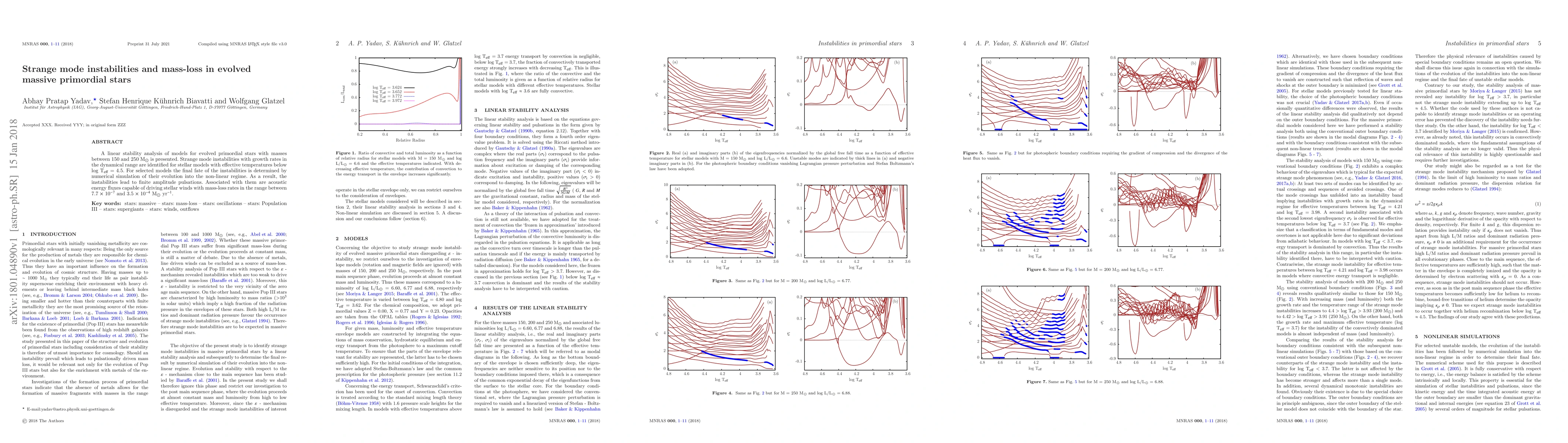This paper investigates the linear stability of evolved massive primordial stars, revealing strange mode instabilities that trigger non-linear pulsations. These instabilities drive stellar winds, resulting in significant mass-loss rates ranging from 7.7 × 10$^{-7}$ to 3.5 × 10$^{-4}$ M$_{\odot}$ yr$^{-1}$.