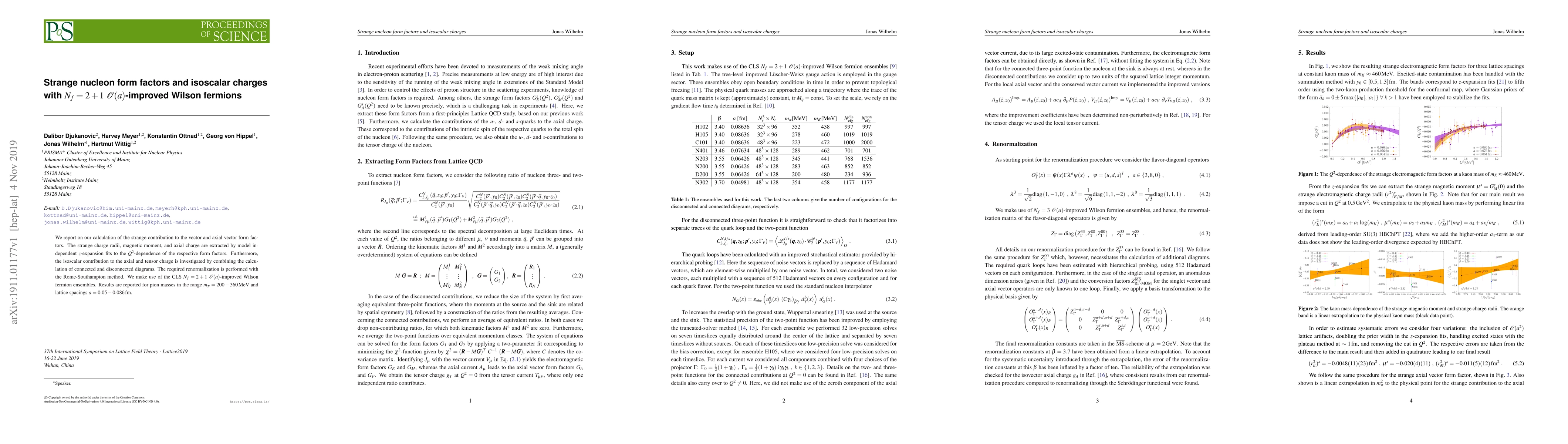 The paper presents a detailed calculation of strange nucleon form factors and isoscalar charges using Lattice QCD with $N_f=2+1$ $\mathcal{O}(a)$-improved Wilson fermions, including renormalization using the Rome-Southampton method.