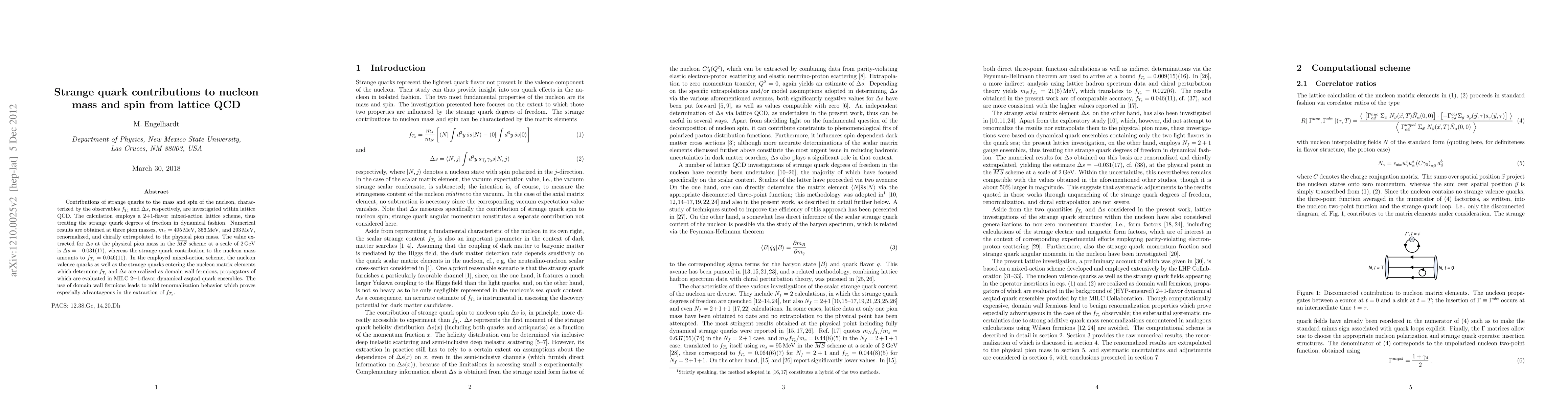 This paper investigates strange quark contributions to the nucleon mass and spin using lattice QCD, finding that the strange quark mass fraction is f_Ts = 0.046(11) and the strange quark spin contribution is Delta s = -0.031(17) at the physical pion mass. The study employs a 2+1-flavor mixed-action scheme with domain wall fermions for improved renormalization behavior.