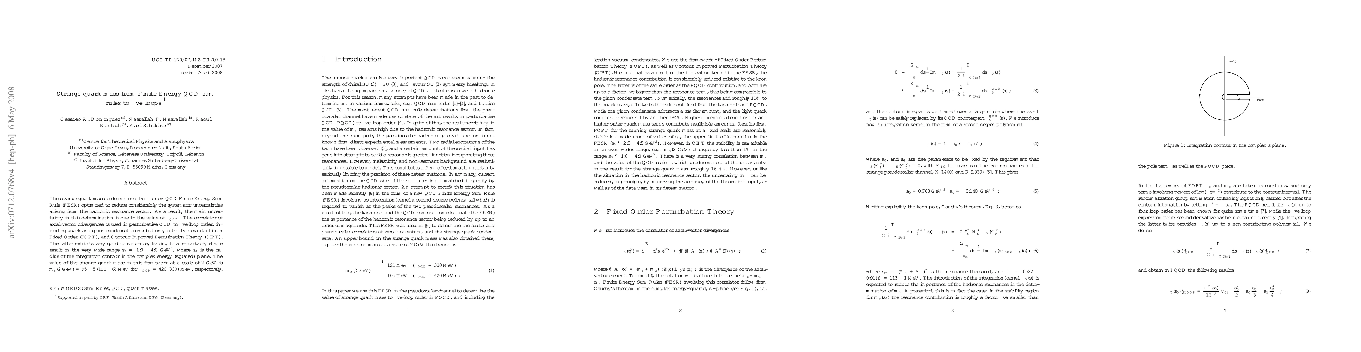This paper determines the strange quark mass using a new QCD Finite Energy Sum Rule, minimizing uncertainties from the hadronic resonance sector. The result, stable across a wide range, yields $m_s(2 {GeV}) = 95 \pm 5 (111 \pm 6) {MeV}$ at $\Lambda_{QCD} = 420 (330) {MeV}$.