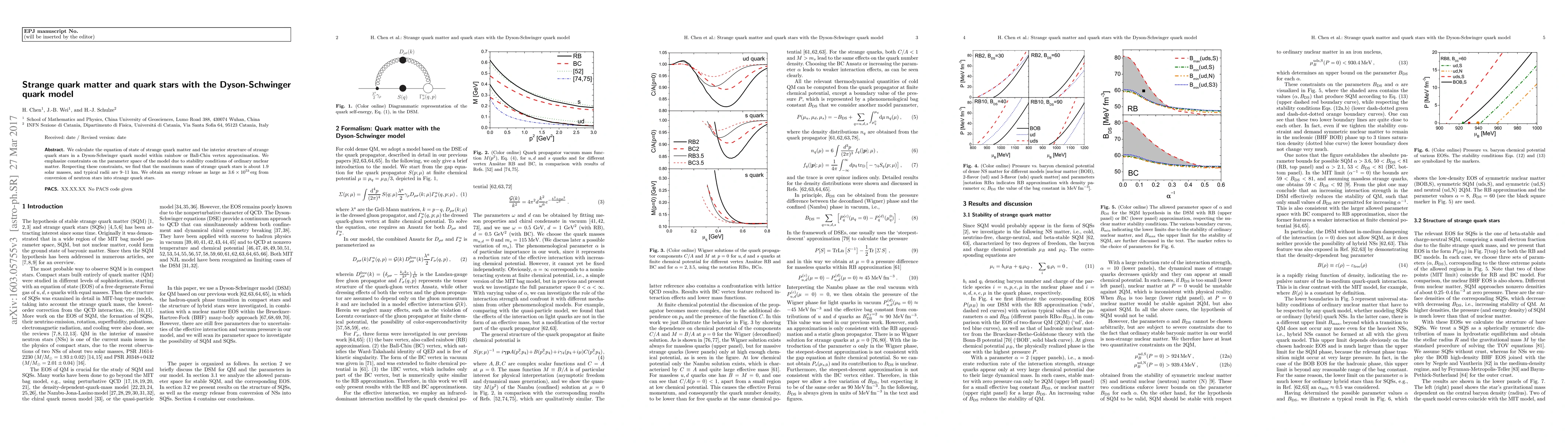 This research uses the Dyson-Schwinger quark model to study the equation of state for strange quark matter and the structure of strange quark stars, finding a maximum mass of around 1.9 solar masses and typical radii of 9-11 km. It also calculates a large energy release of $3.6 \times 10^{53}$ erg from neutron star conversions to strange quark stars.