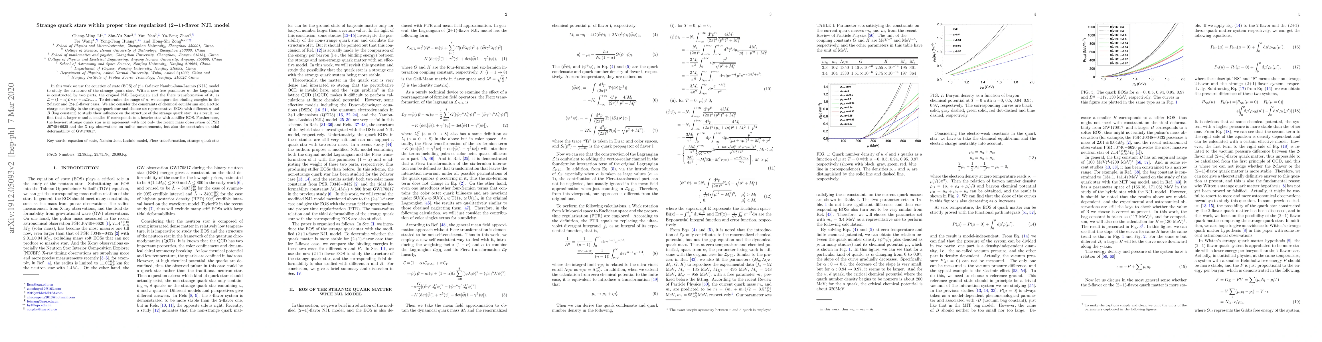 This paper investigates the structure of strange quark stars using a (2+1)-flavor NJL model with a new parameter $\alpha$. It finds that larger $\alpha$ and smaller bag constant $B$ lead to heavier, stiffer stars, which align with recent observations of PSR J0740+6620 and the GW170817 event.
