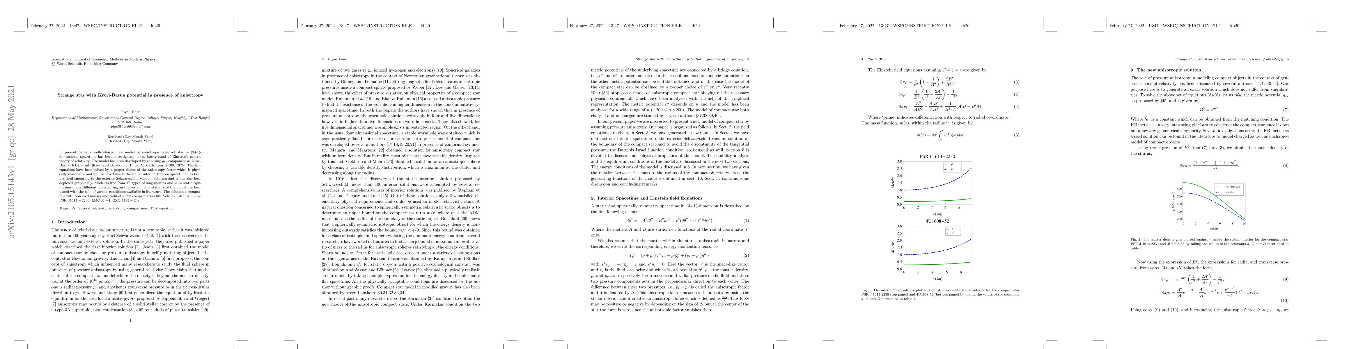 This paper develops a new model of anisotropic compact stars using the Krori-Barua potential in the context of general relativity, solving the field equations with a reasonable anisotropy factor. The model is singularity-free, in static equilibrium, and compatible with the observed masses and radii of known compact stars.