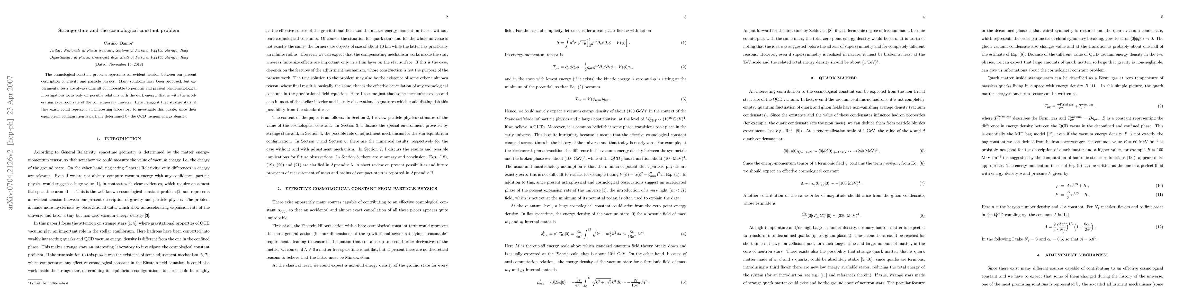 The cosmological constant problem highlights a discrepancy between gravity and particle physics, with strange stars potentially offering a unique laboratory to investigate this issue due to their equilibrium configuration being influenced by QCD vacuum energy density.