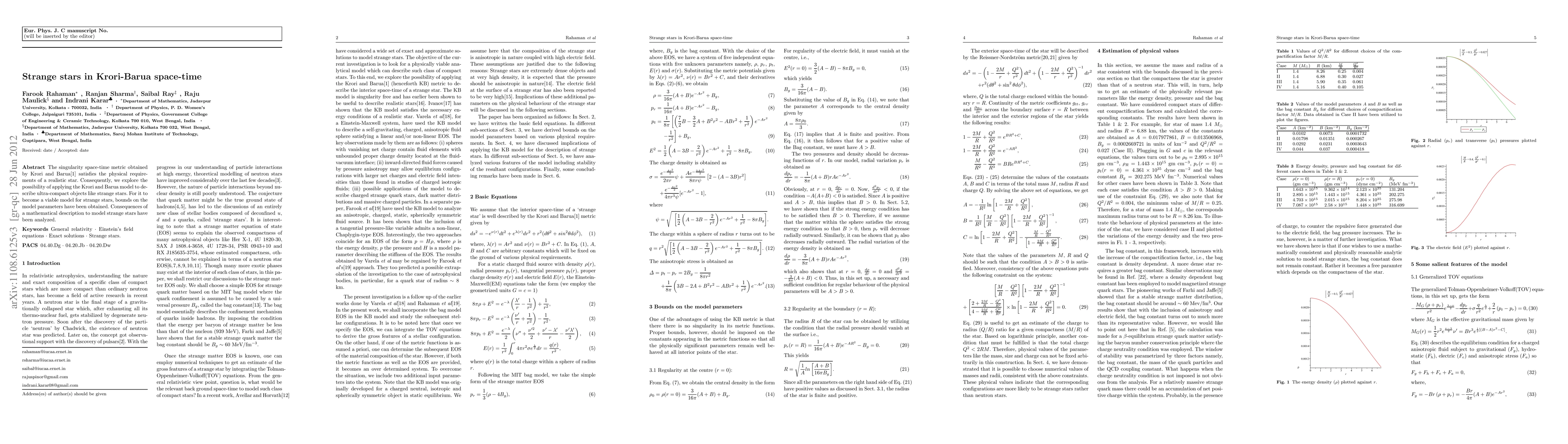 This paper investigates the application of the Krori-Barua space-time metric to describe ultra-compact objects known as strange stars, deriving parameter bounds for the model and analyzing its mathematical implications.