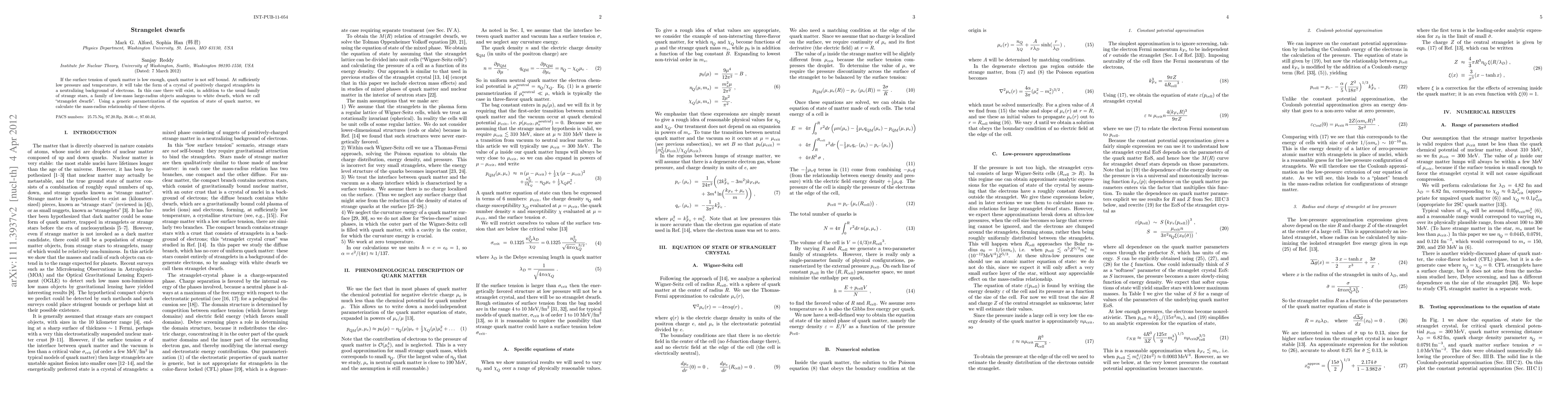 If the surface tension of quark matter is low enough, quark matter is not self bound. At sufficiently low pressure and temperature, it will take the form of a crystal of positively charged strangelets in a neutralizing background of electrons. In this case there will exist, in addition to the usual family of strange stars, a family of low-mass large-radius objects analogous to white dwarfs, which we call "strangelet dwarfs". Using a generic parametrization of the equation of state of quark matter, we calculate the mass-radius relationship of these objects.
