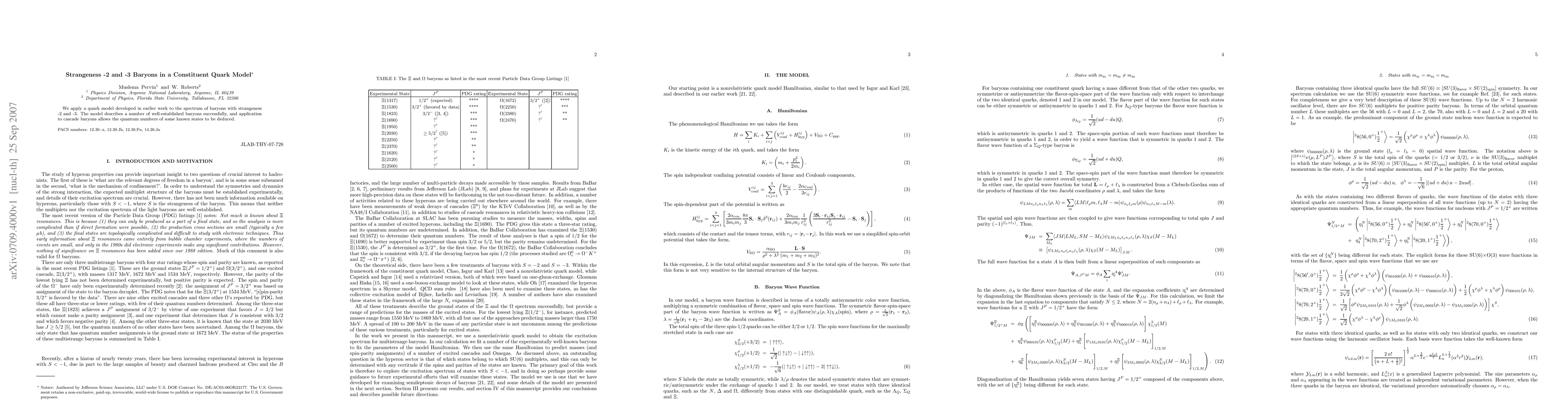We apply a quark model developed in earlier work to the spectrum of baryons with strangeness -2 and -3. The model describes a number of well-established baryons successfully, and application to cascade baryons allows the quantum numbers of some known states to be deduced.