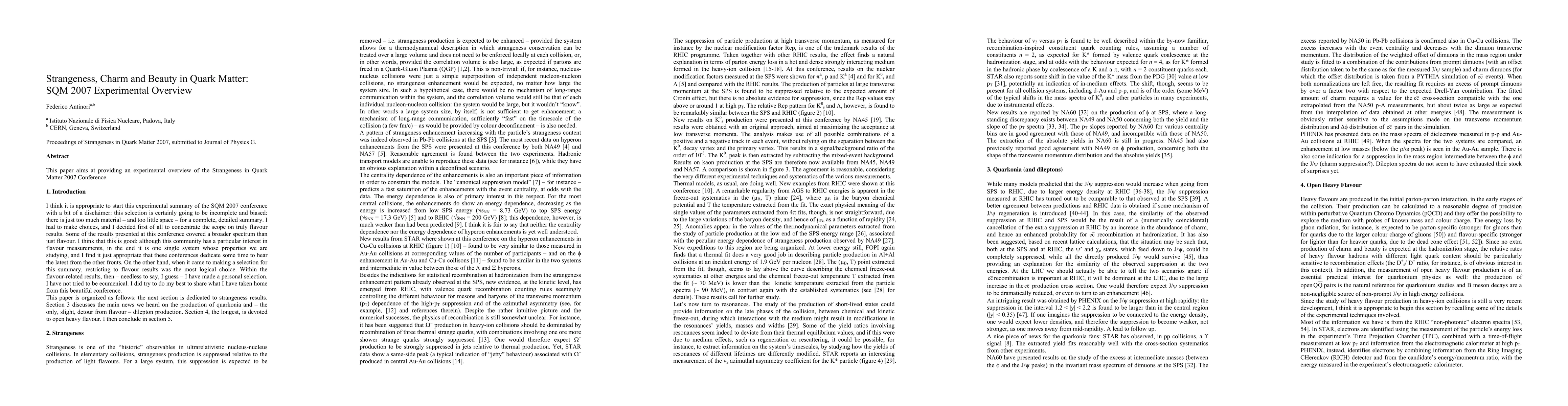 The paper presents an experimental overview of the Strangeness in Quark Matter 2007 Conference, highlighting key findings and discussions on strangeness, charm, and beauty in quark matter, but does not detail specific methodologies or implications.