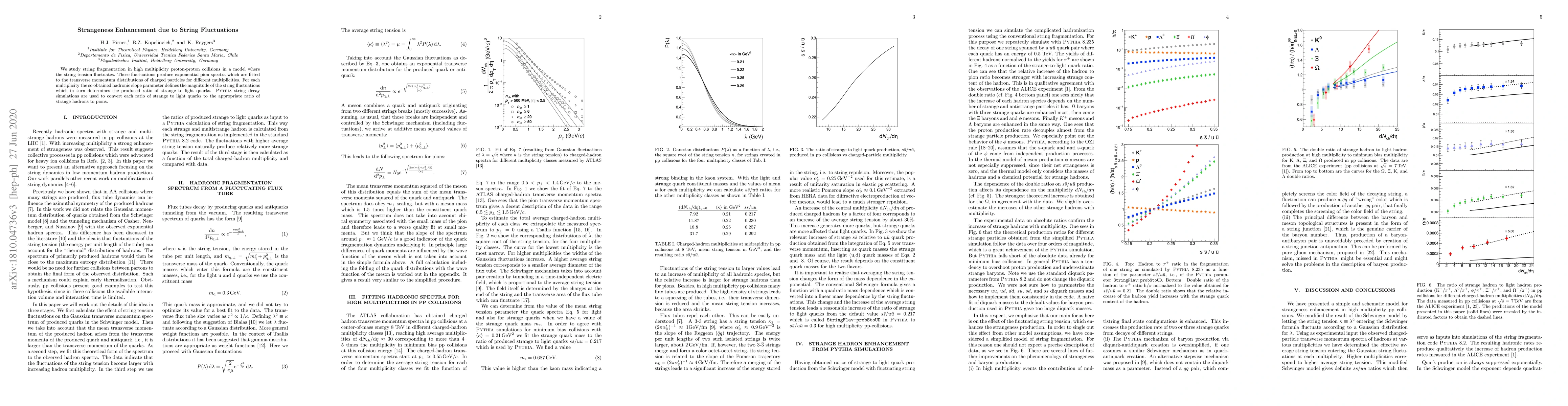 The paper presents a modified Schwinger model with fluctuating string tension, which is used to determine s¯/u¯u ratios and simulate hadron production via Pythia.