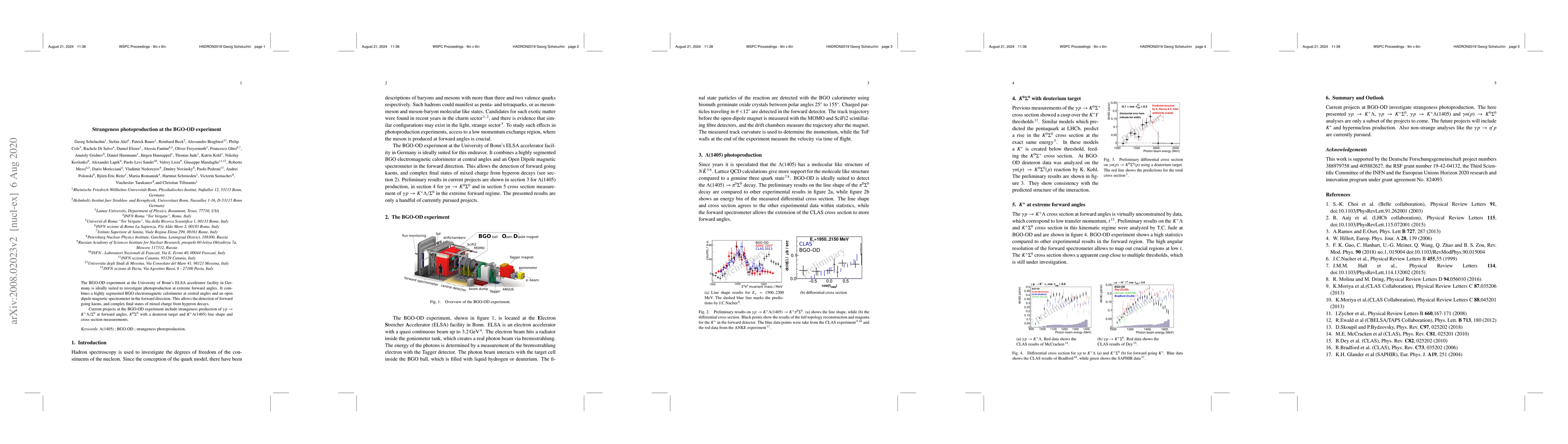The BGO-OD experiment at the University of Bonn's ELSA accelerator facility in Germany is ideally suited to investigate photoproduction at extreme forward angles. It combines a highly segmented BGO electromagnetic calorimeter at central angles and an open dipole magnetic spectrometer in the forward direction. This allows the detection of forward going kaons, and complex final states of mixed charge from hyperon decays. Current projects at the BGO-OD experiment include strangeness production of $\gamma p \rightarrow K^+ \Lambda/\Sigma^0$ at forward angles, $K^0\Sigma^0$ with a deuteron target and $K^+\Lambda(1405)$ line shape and cross section measurements.