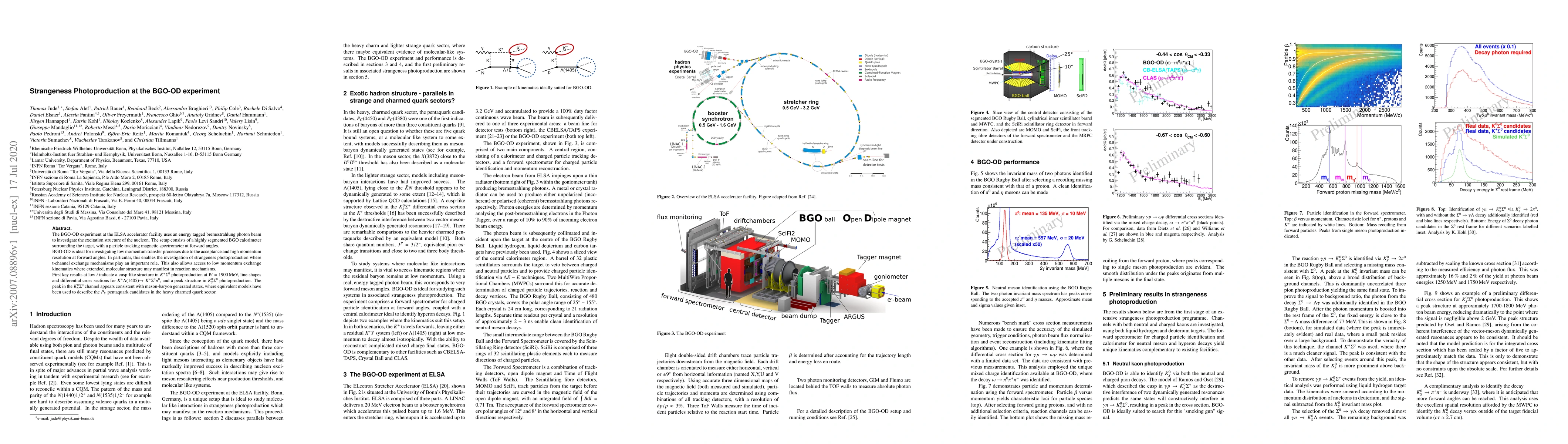 The BGO-OD experiment at ELSA facility uses photons to study nucleon excitations, revealing a cusp in K+Σ0 photoproduction at 1900 MeV and peak structures in K+Λ(1405) and K0_SΣ0 channels. These findings suggest extended molecular structures and meson-baryon generated states, akin to models explaining P_C pentaquark candidates in heavy charmed quark sector.