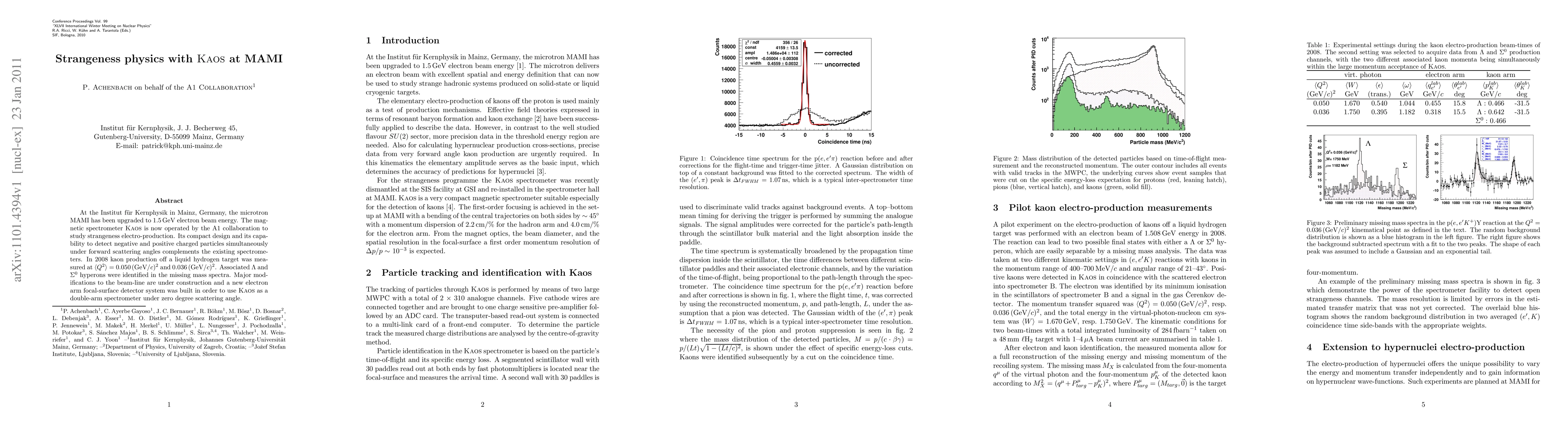 Researchers at MAMI used Kaos to study strangeness electro-production, measuring kaon production off a liquid hydrogen target and identifying associated hyperons in 2008, with plans for further upgrades to improve detection capabilities.