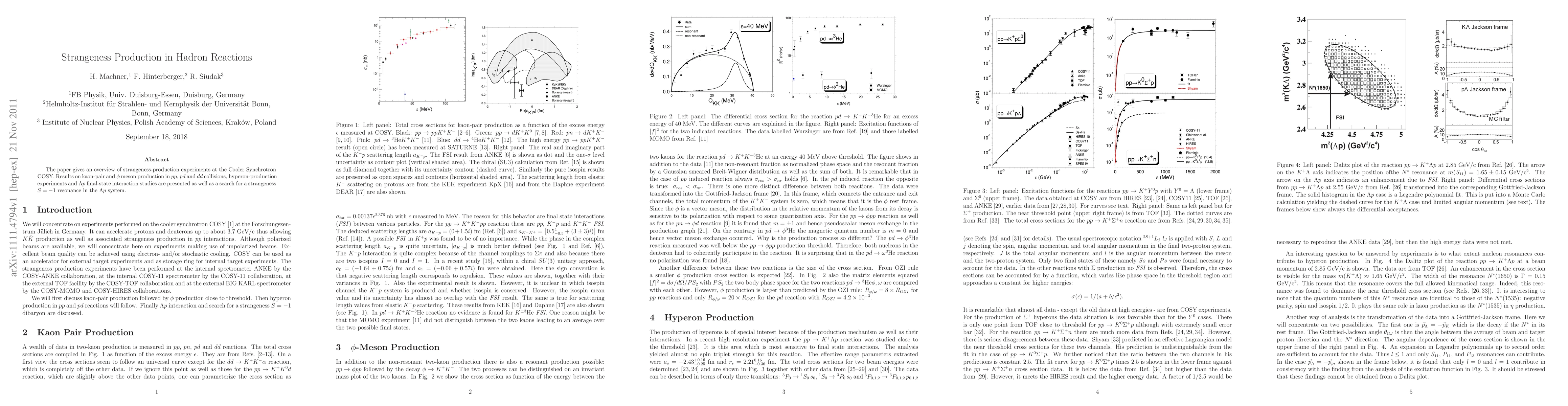 This paper reviews strangeness production experiments at COSY, detailing results from kaon-pair and $\phi$ meson production in proton-proton, proton-deuteron, and deuteron-deuteron collisions, hyperon production, and $\Lambda p$ final-state interactions, along with a search for a $S=-1$ resonance in the $\Lambda p$ system.