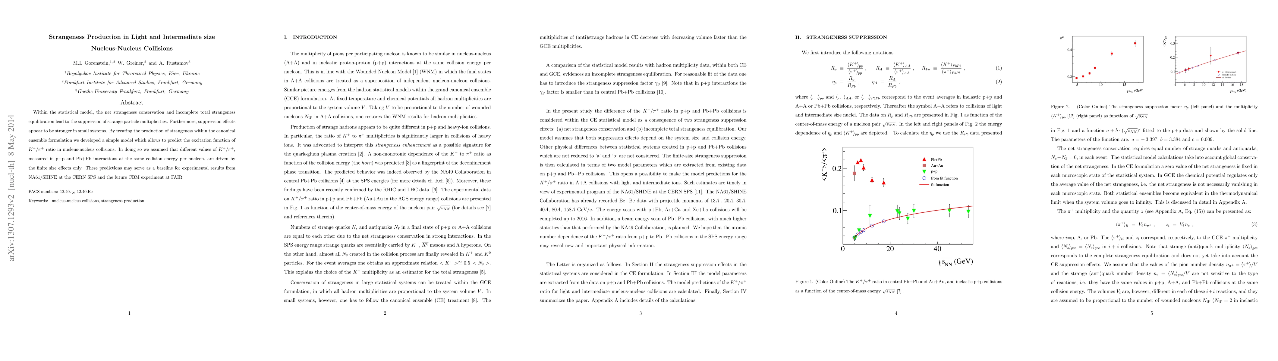 This paper develops a statistical model to predict the suppression of strange particle multiplicities in light and intermediate nucleus-nucleus collisions, attributing the effect to incomplete strangeness equilibration and net strangeness conservation. The model predicts the $K^+/\pi^+$ ratio, suggesting that finite size effects influence the ratio differently in small versus large systems.