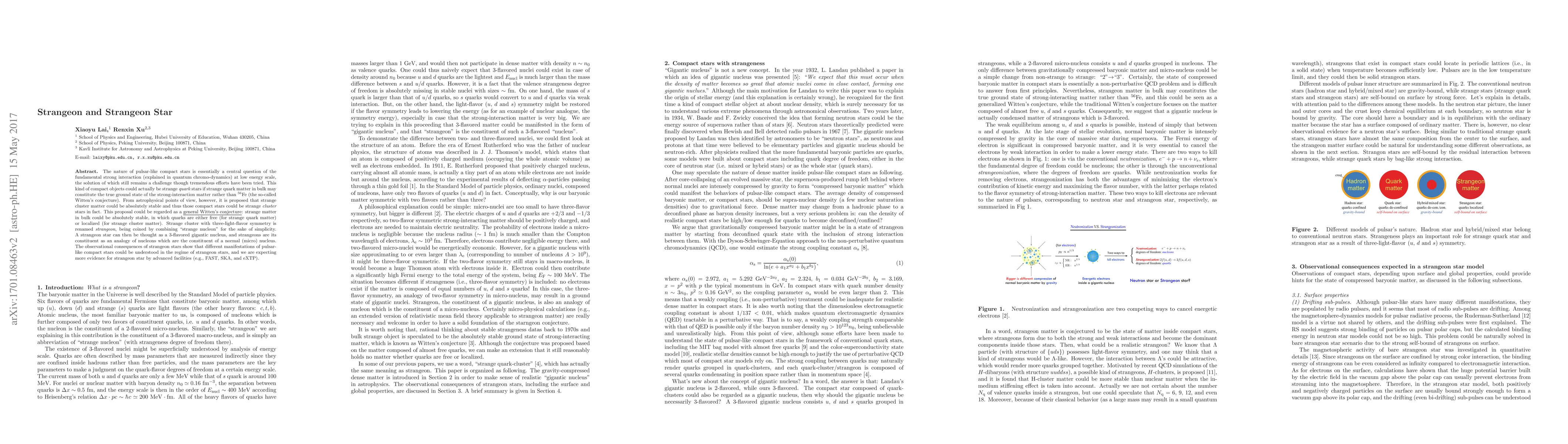 The paper introduces the concept of strangeons and strangeon stars, proposing them as an alternative to traditional neutron stars, and explores their observational consequences.