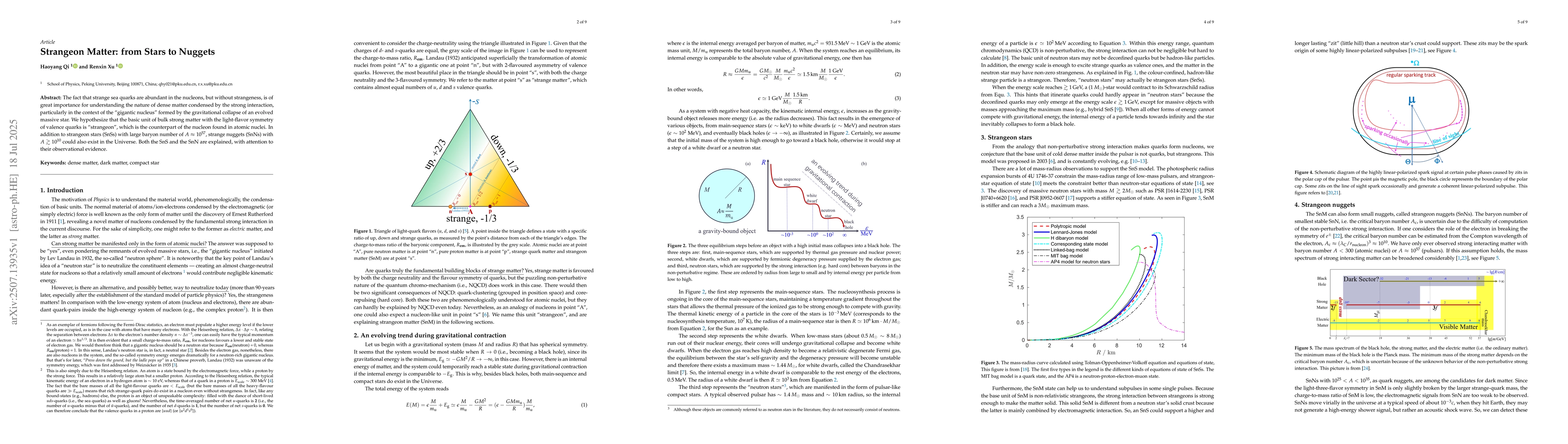 The paper introduces the concept of strangeon stars and nuggets as potential constituents of dense matter, proposing a new model for compact stars and dark matter candidates based on strangeons instead of quarks.
