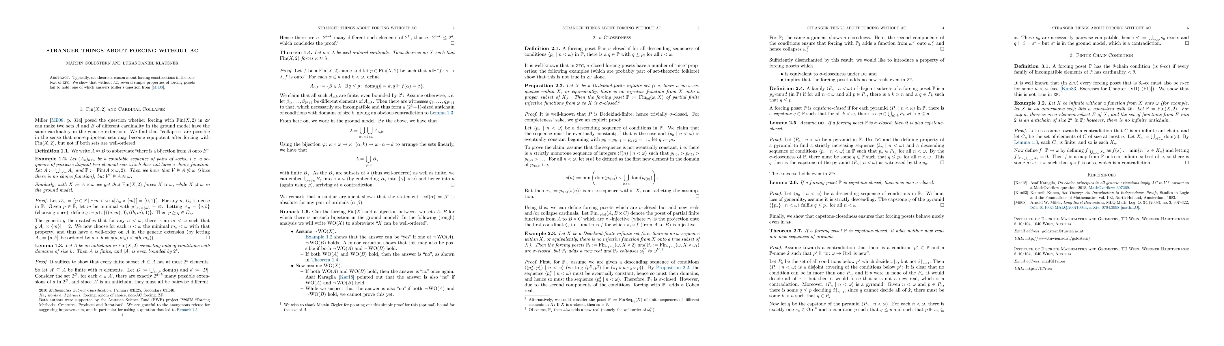 Typically, set theorists reason about forcing constructions in the context of ZFC. We show that without AC, several simple properties of forcing posets fail to hold, one of which answers Miller's question from arXiv:0704.3998.
