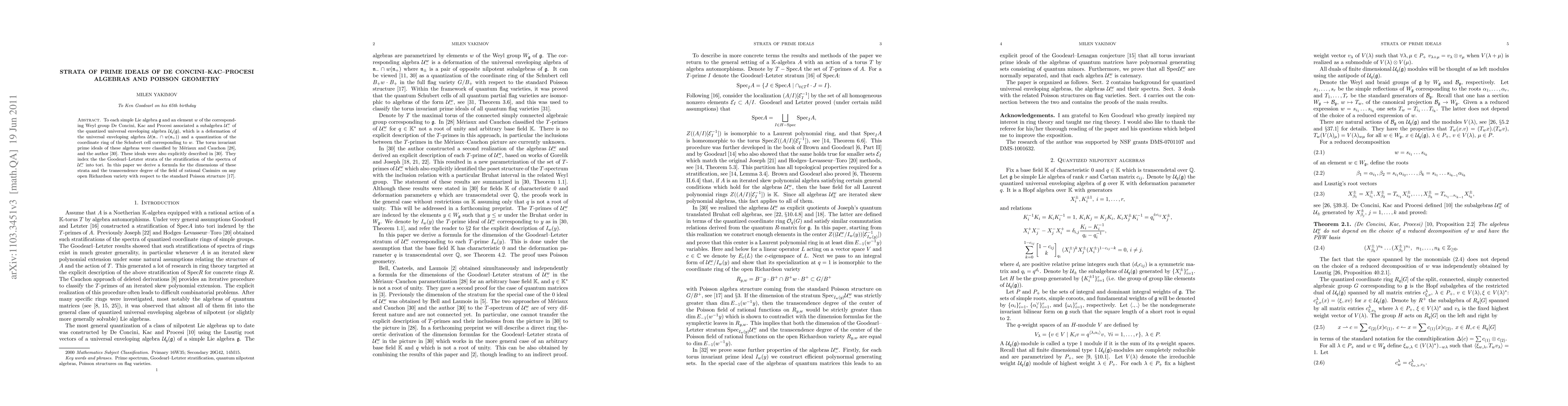 This paper classifies torus invariant prime ideals of De Concini-Kac-Procesi algebras and derives formulas for the dimensions of strata in their spectra and the transcendence degree of the field of rational Casimirs, linking these results to the Goodearl-Letzter stratification and standard Poisson structure.