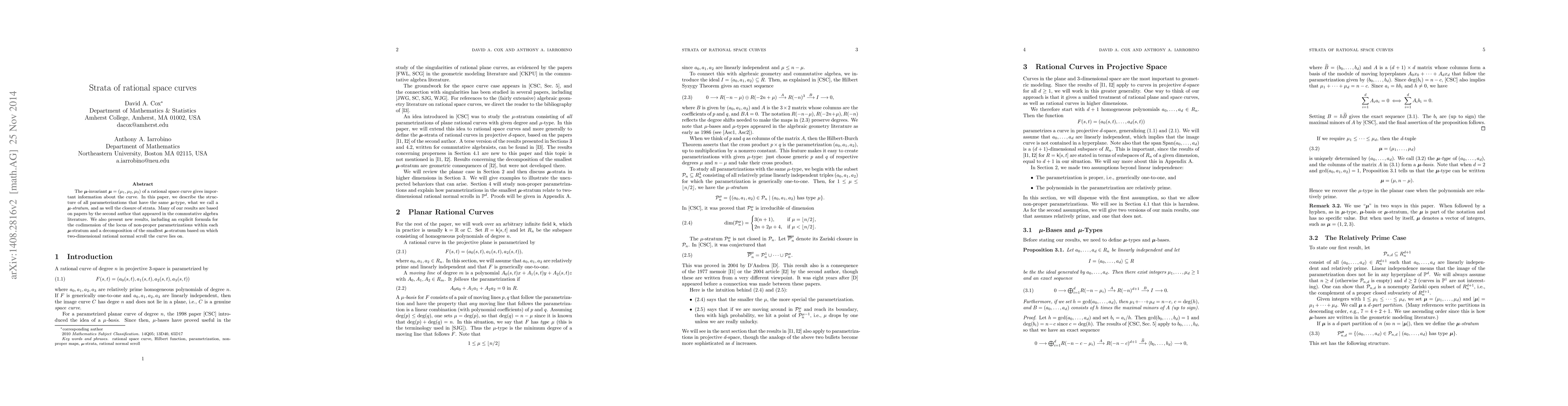 The paper explores the mu-invariant of rational space curves, detailing the structure of mu-strata—parameterizations sharing the same mu-type—and their closures. It includes new results, such as a formula for the codimension of non-proper parametrizations and a decomposition of the smallest mu-stratum based on rational normal scrolls.