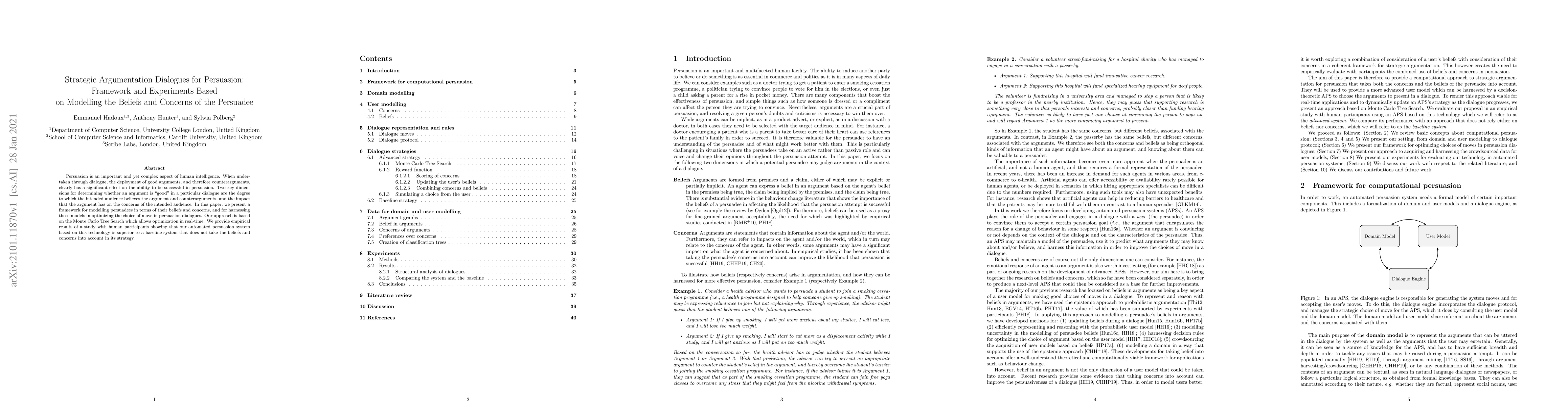 This paper presents a framework for strategic argumentation in persuasion dialogues, focusing on modelling the beliefs and concerns of the audience to optimize persuasive arguments. Using Monte Carlo Tree Search, the proposed system outperforms a baseline in experiments with human participants.