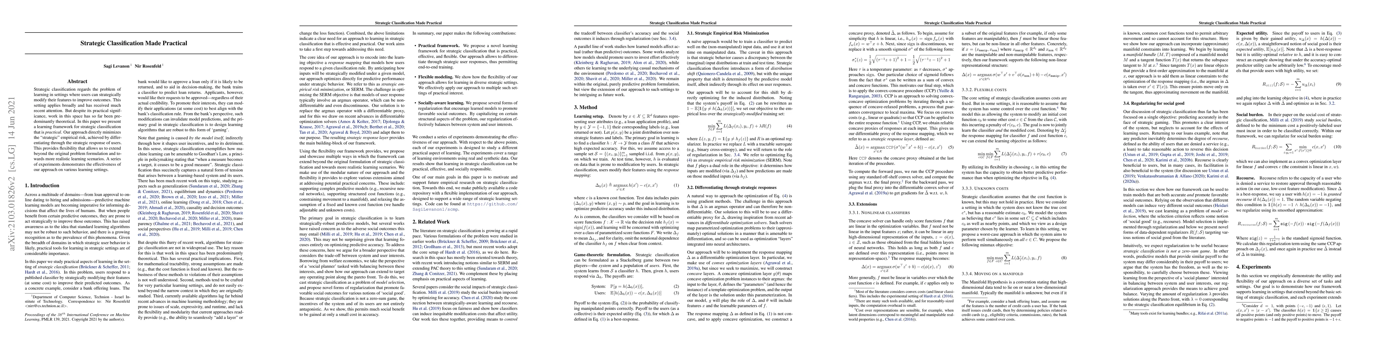 This paper introduces a practical learning framework for strategic classification, directly minimizing the "strategic" empirical risk by accounting for users' ability to modify their features. Experiments show its effectiveness across various realistic learning scenarios.
