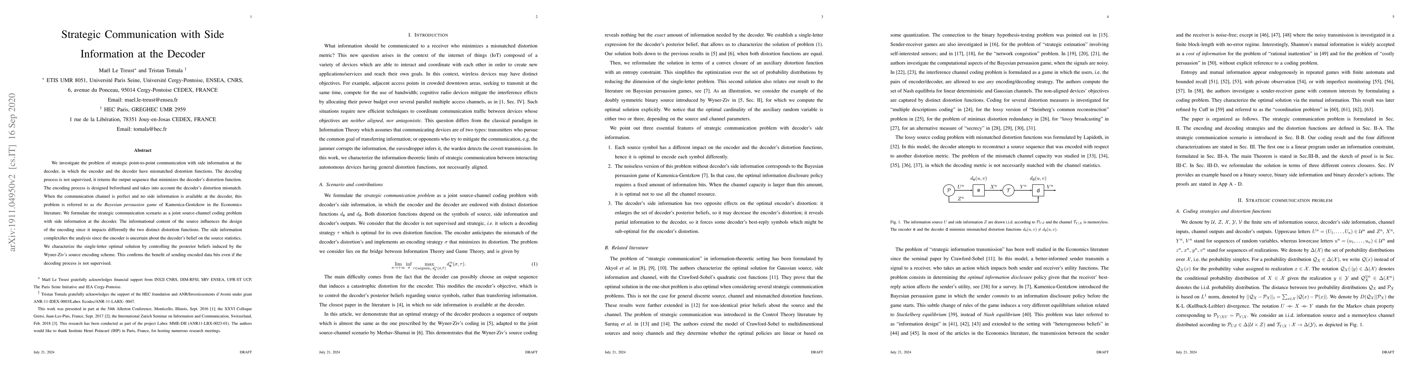 This paper explores strategic communication where the decoder has side information but mismatched distortion functions with the encoder, framing it as a joint source-channel coding problem. It characterizes the optimal encoding strategy using Wyner-Ziv's source encoding to manage posterior beliefs, highlighting the value of encoded data even in unsupervised decoding.