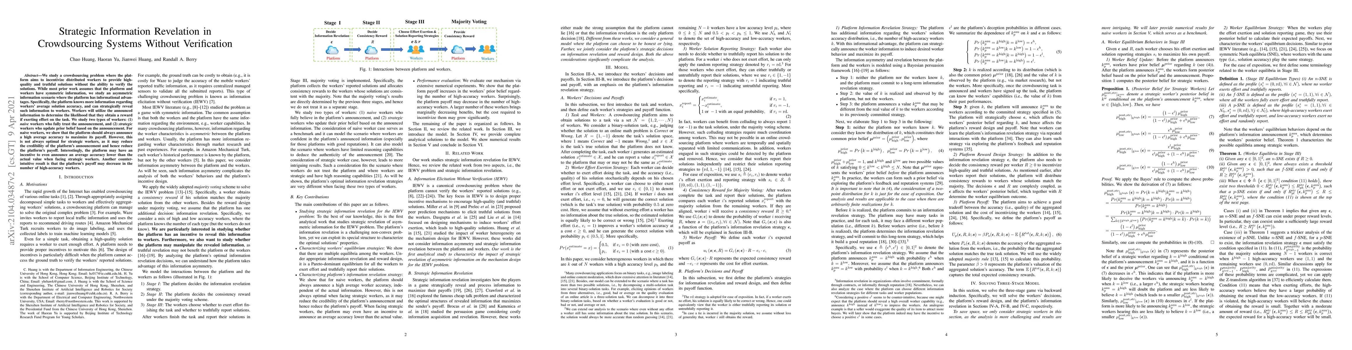 A crowdsourcing platform can strategically reveal information about worker accuracy to influence effort levels, but this may reduce its own payoff when faced with strategic workers. Unexpectedly, the platform's payoff can decrease with more high-accuracy workers.
