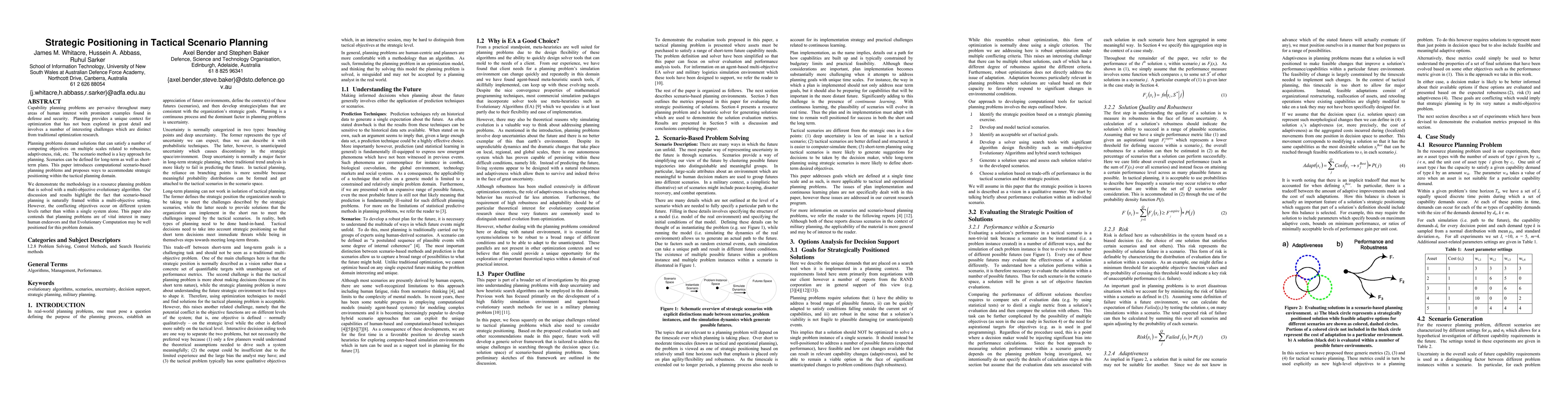 This paper explores strategic positioning in tactical scenario planning, emphasizing the unique challenges of capability planning in defense and security. It proposes a multi-objective evolutionary algorithm to solve computational planning problems, demonstrating that scenario-based planning inherently involves conflicting objectives across different system levels.