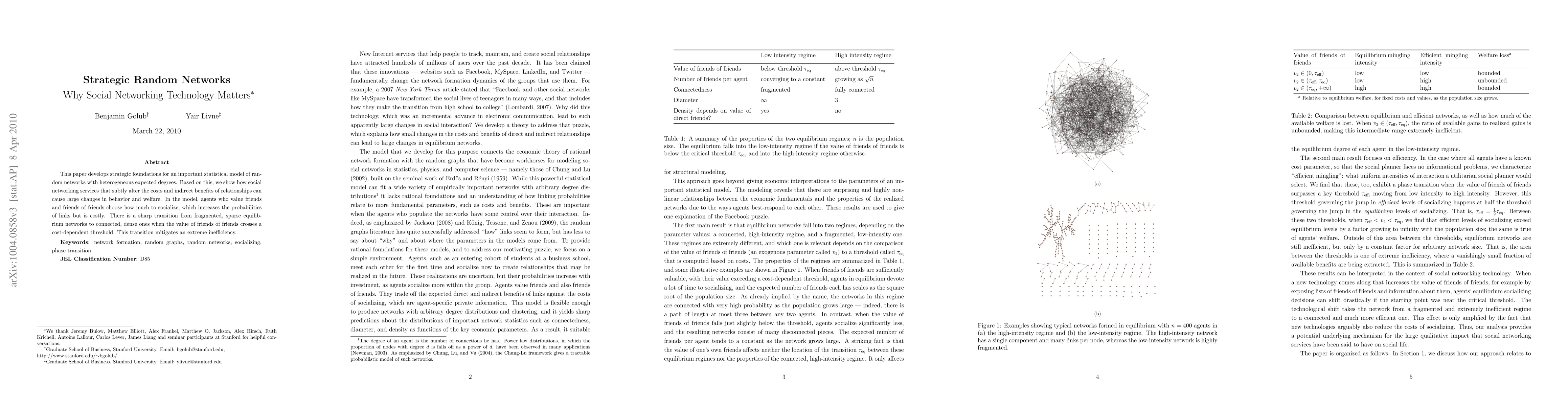 This paper develops strategic foundations for an important statistical model of random networks with heterogeneous expected degrees. Based on this, we show how social networking services that subtly alter the costs and indirect benefits of relationships can cause large changes in behavior and welfare. In the model, agents who value friends and friends of friends choose how much to socialize, which increases the probabilities of links but is costly. There is a sharp transition from fragmented, sparse equilibrium networks to connected, dense ones when the value of friends of friends crosses a cost-dependent threshold. This transition mitigates an extreme inefficiency.