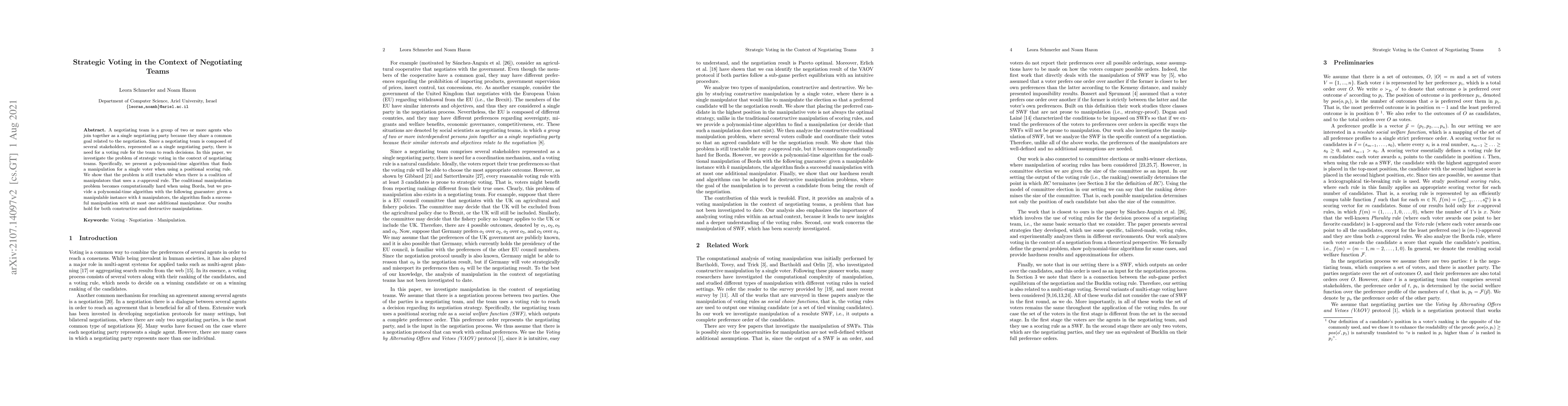 Researchers developed algorithms to detect strategic voting in negotiating teams using various scoring rules, including positional scoring, x-approval rule, and Borda count, providing a foundation for detecting manipulations in team decision-making.