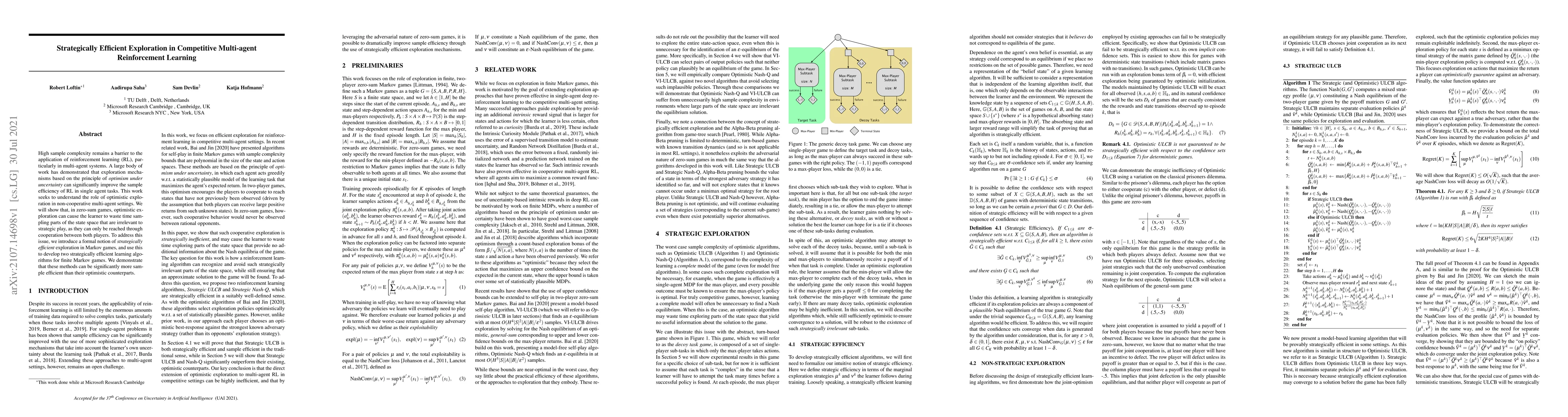 This paper investigates the role of optimistic exploration in multi-agent reinforcement learning, showing that it can lead to inefficient sampling in zero-sum games. The authors propose strategically efficient exploration methods to improve sample efficiency in non-cooperative multi-agent settings, demonstrating their effectiveness through two new algorithms.