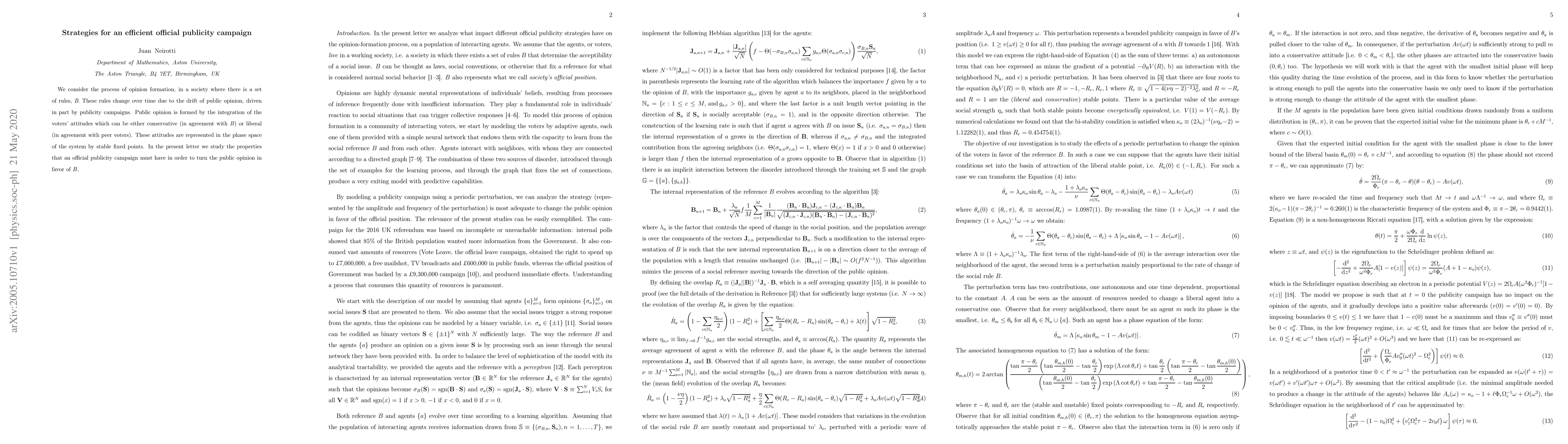 We consider the process of opinion formation, in a society where there is a set of rules, $B$. These rules change over time due to the drift of public opinion, driven in part by publicity campaigns. Public opinion is formed by the integration of the voters' attitudes which can be either conservative (in agreement with $B$) or liberal (in agreement with peer voters). These attitudes are represented in the phase space of the system by stable fixed points. In the present letter we study the properties that an official publicity campaign must have in order to turn the public opinion in favor of $B.$