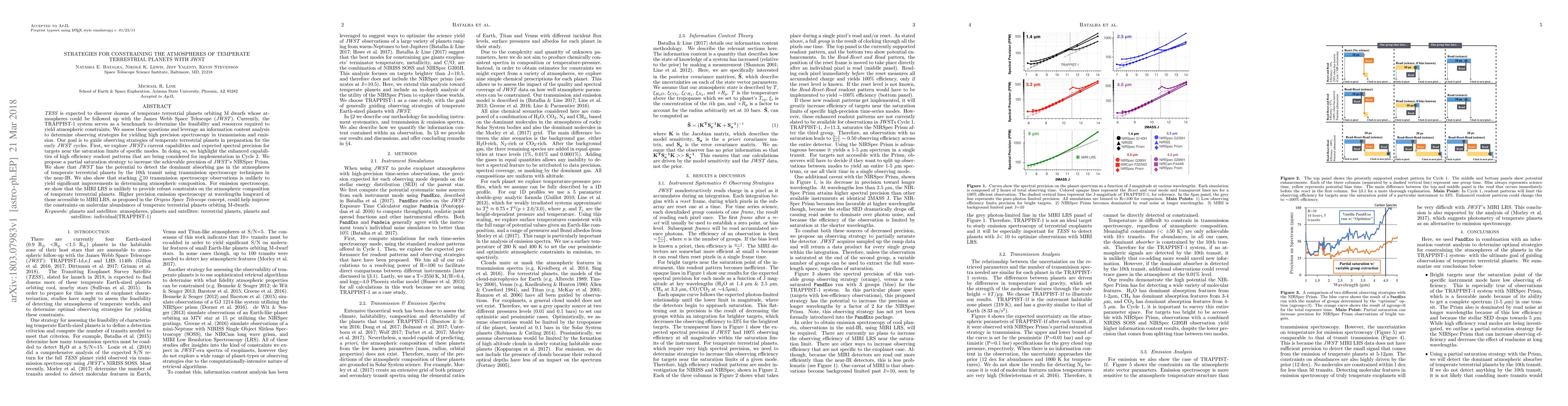 This paper evaluates strategies for using the James Webb Space Telescope (JWST) to constrain the atmospheres of temperate terrestrial planets discovered by TESS. It proposes a partial saturation strategy for JWST's NIRSpec Prism to enhance precision and concludes that transmission spectroscopy can detect dominant atmospheric gases within ten transits, while emission spectroscopy with MIRI LRS offers limited benefits, suggesting future high-precision emission spectroscopy concepts may provide better atmospheric constraints.