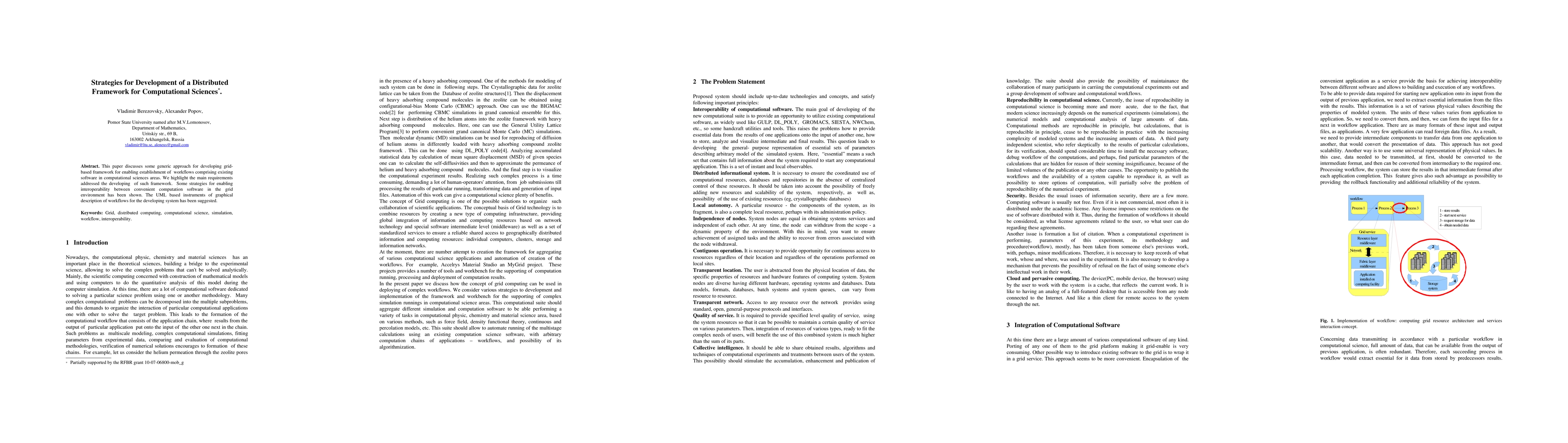 This paper discusses some generic approach for developing grid-based framework for enabling establishment of workflows comprising existing software in computational sciences areas. We highlight the main requirements addressed the developing of such framework. Some strategies for enabling interoperability between convenient computation software in the grid environment has been shown. The UML based instruments of graphical description of workflows for the developing system has been suggested.