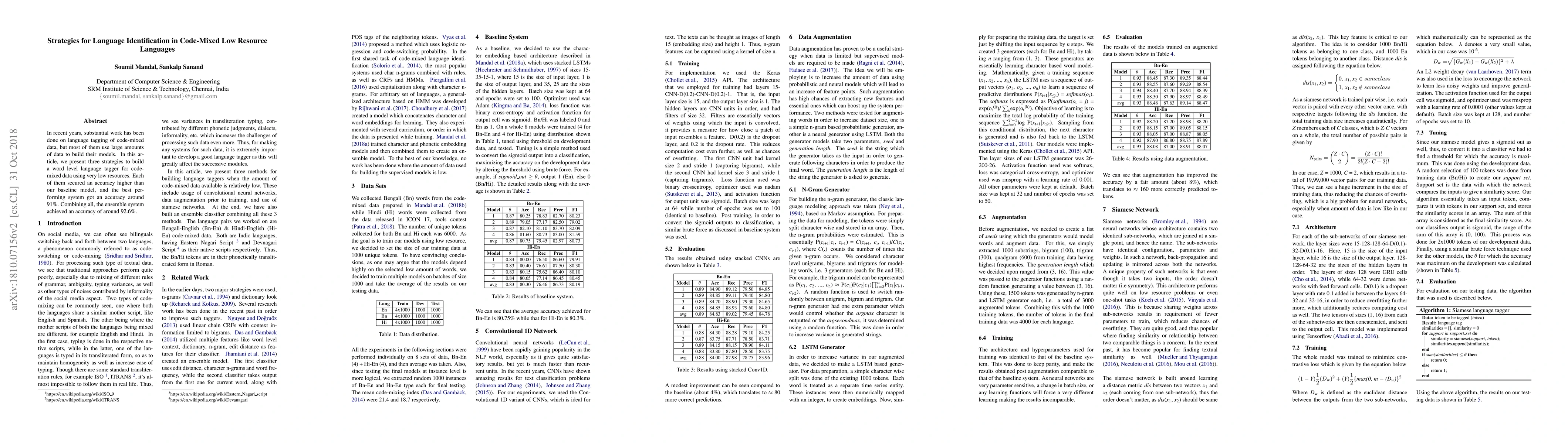 This paper proposes three low-resource strategies for building a word-level language tagger for code-mixed data, achieving accuracies above 91%, with the best strategy reaching 92.6% accuracy when combined in an ensemble system.