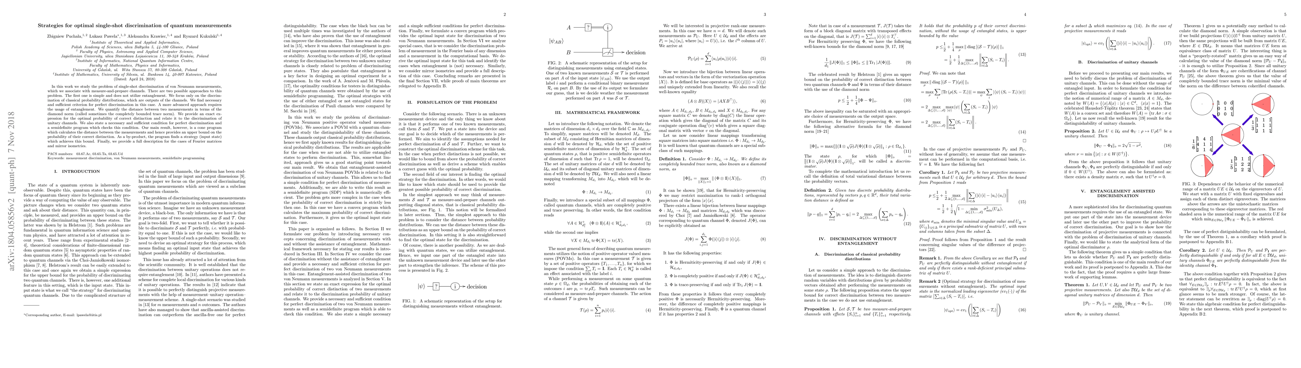 This paper investigates optimal strategies for single-shot discrimination of von Neumann measurements, offering a classical approach without entanglement and an advanced method using entanglement quantified via the diamond norm. It presents a cone program that calculates this distance, providing an upper bound on the probability of correct distinction and a strategy achieving this bound.