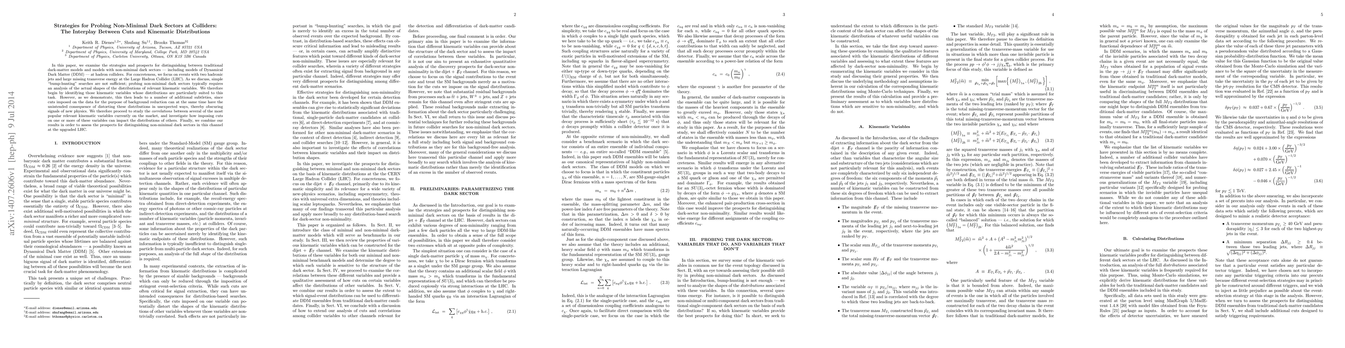 In this paper, we examine the strategies and prospects for distinguishing between traditional dark-matter models and models with non-minimal dark sectors --- including models of Dynamical Dark Matter (DDM) --- at hadron colliders. For concreteness, we focus on events with two hadronic jets and large missing transverse energy at the Large Hadron Collider (LHC). As we discuss, simple "bump-hunting" searches are not sufficient; probing non-minimal dark sectors typically requires an analysis of the actual shapes of the distributions of relevant kinematic variables. We therefore begin by identifying those kinematic variables whose distributions are particularly suited to this task. However, as we demonstrate, this then leads to a number of additional subtleties, since cuts imposed on the data for the purpose of background reduction can at the same time have the unintended consequence of distorting these distributions in unexpected ways, thereby obscuring signals of new physics. We therefore proceed to study the correlations between several of the most popular relevant kinematic variables currently on the market, and investigate how imposing cuts on one or more of these variables can impact the distributions of others. Finally, we combine our results in order to assess the prospects for distinguishing non-minimal dark sectors in this channel at the upgraded LHC.