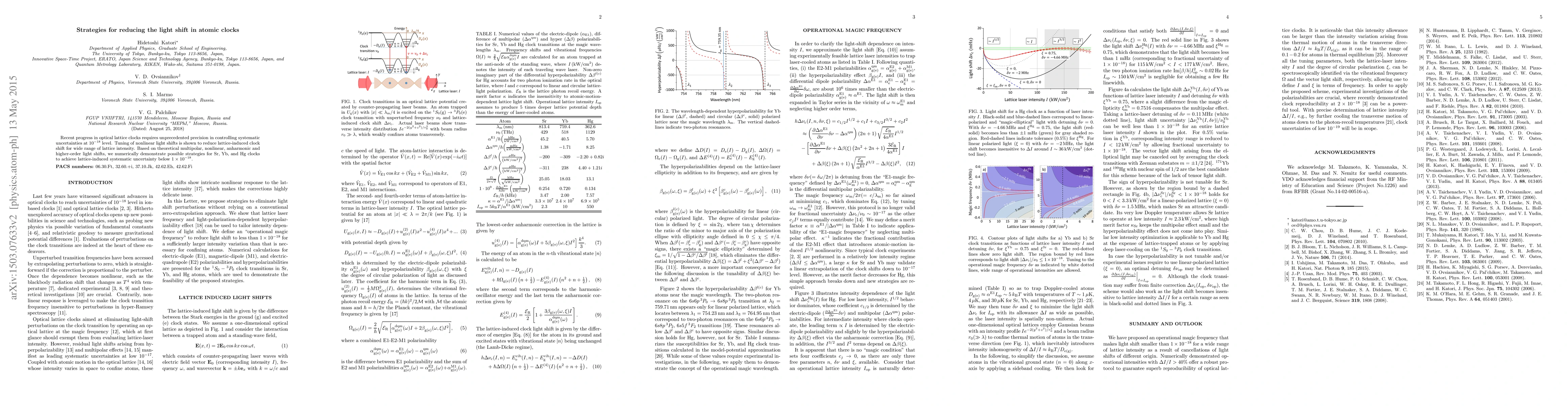 The paper explores strategies to minimize light shift in optical lattice clocks, demonstrating that tuning nonlinear light shifts can reduce lattice-induced clock shifts. Numerical simulations show potential methods to achieve systematic uncertainties below $1 \times 10^{-18}$ for Sr, Yb, and Hg atomic clocks.