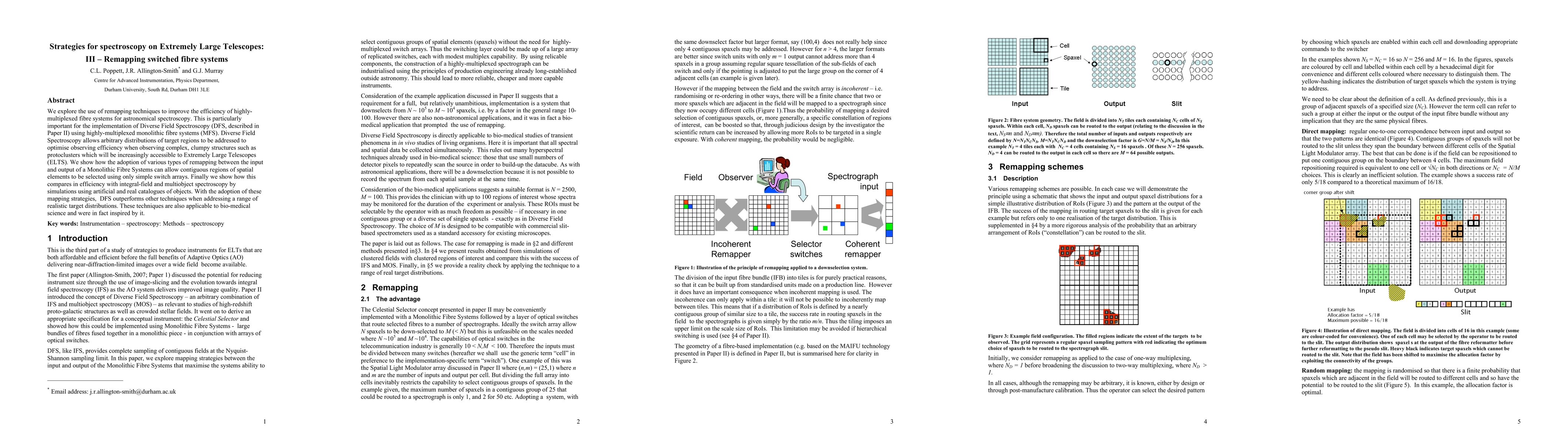 This paper investigates remapping techniques to enhance the efficiency of multiplexed fibre systems for astronomical spectroscopy, particularly for Diverse Field Spectroscopy (DFS) on Extremely Large Telescopes. The study demonstrates that remapping allows contiguous regions to be selected using simple switch arrays, outperforming integral-field and multiobject spectroscopy in simulations, and is also applicable to bio-medical science.
