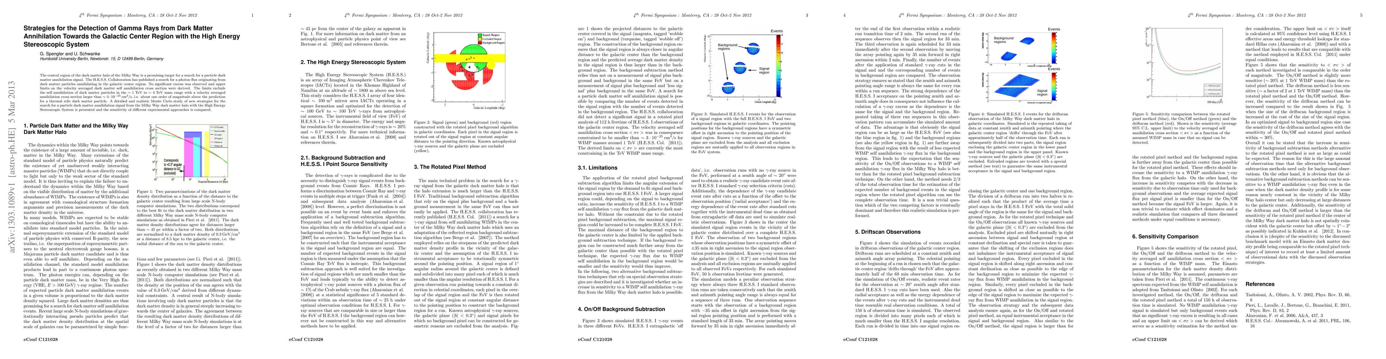 The central region of the dark matter halo of the Milky Way is a promising target for a search for a particle dark matter annihilation signal. The H.E.S.S. Collaboration has published a search for a photon flux originating from dark matter particles annihilating in the galactic center region. No significant excess was observed and upper limits on the velocity averaged dark matter self annihilation cross section were derived. The limits exclude the self annihilation of dark matter particles in the $\sim 1$ TeV to $\sim 4$ TeV mass range with a velocity averaged annihilation cross section larger than $\sim 3\cdot 10^{-25}\:\mathrm{cm^3/s}$, i.e. about one order of magnitude above the prediction for a thermal relic dark matter particle. A detailed and realistic Monte Carlo study of new strategies for the search for a particle dark matter annihilation signal from the Milky Way dark matter halo with the High Energy Stereoscopic System is presented and the sensitivity of different experimental approaches is compared.