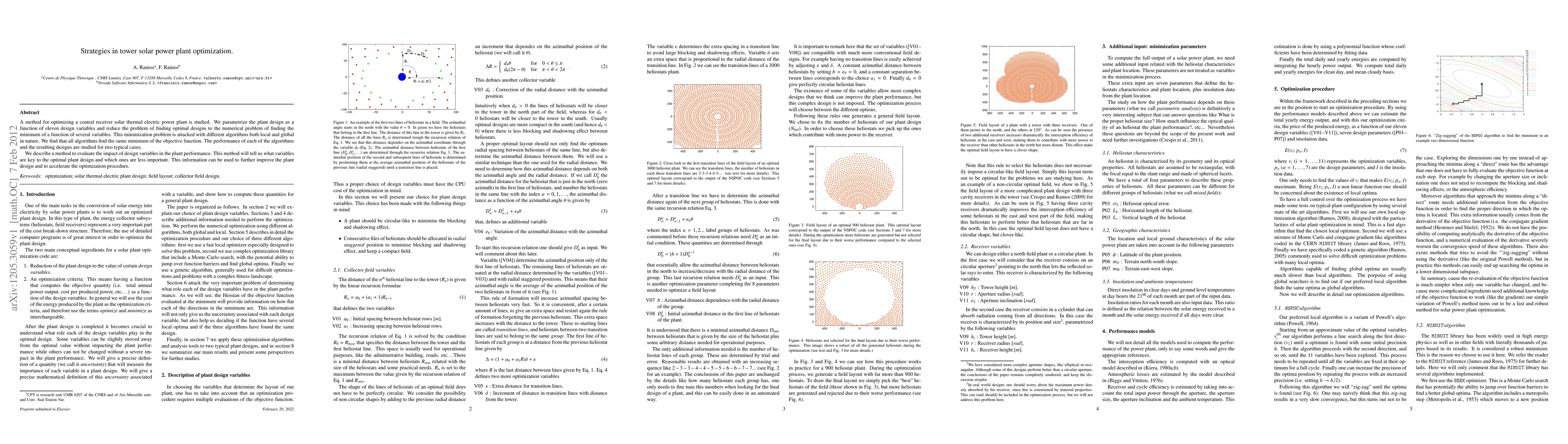 The main technical contribution of this research is the development of a new optimization algorithm, NSPOC, that can efficiently optimize heliostat field layouts and receiver geometries for solar power plants.