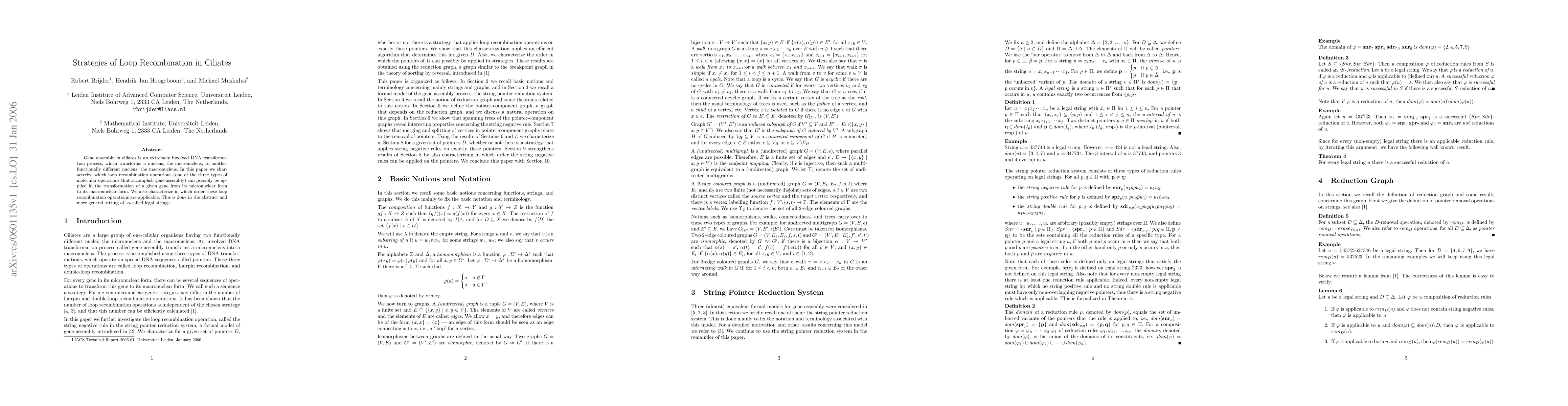 Gene assembly in ciliates is an extremely involved DNA transformation process, which transforms a nucleus, the micronucleus, to another functionally different nucleus, the macronucleus. In this paper we characterize which loop recombination operations (one of the three types of molecular operations that accomplish gene assembly) can possibly be applied in the transformation of a given gene from its micronuclear form to its macronuclear form. We also characterize in which order these loop recombination operations are applicable. This is done in the abstract and more general setting of so-called legal strings.