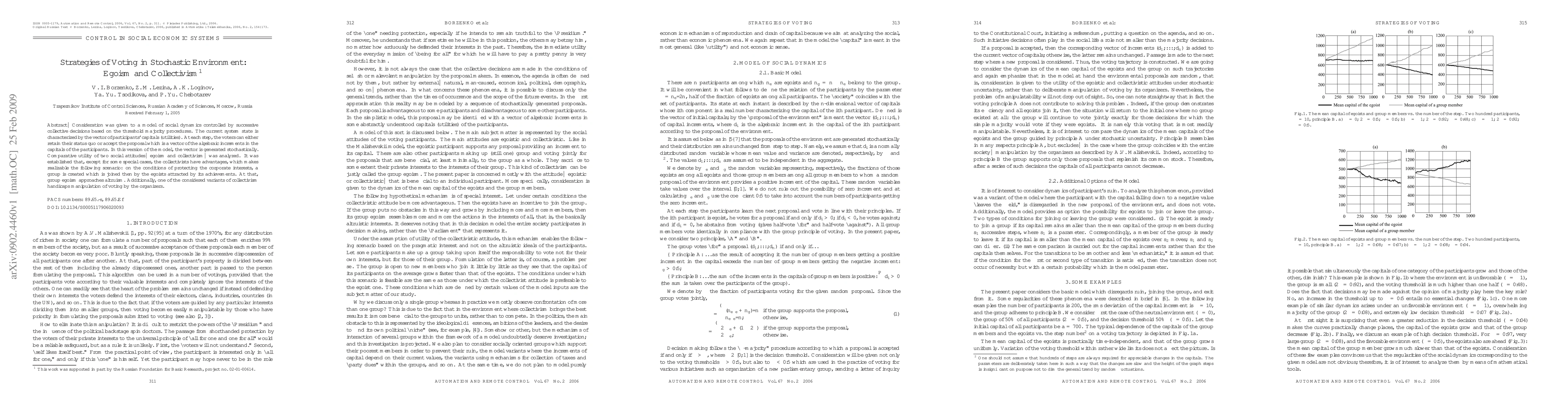 Consideration was given to a model of social dynamics controlled by successive collective decisions based on the threshold majority procedures. The current system state is characterized by the vector of participants' capitals (utilities). At each step, the voters can either retain their status quo or accept the proposal which is a vector of the algebraic increments in the capitals of the participants. In this version of the model, the vector is generated stochastically. Comparative utility of two social attitudes--egoism and collectivism--was analyzed. It was established that, except for some special cases, the collectivists have advantages, which makes realizable the following scenario: on the conditions of protecting the corporate interests, a group is created which is joined then by the egoists attracted by its achievements. At that, group egoism approaches altruism. Additionally, one of the considered variants of collectivism handicaps manipulation of voting by the organizers.