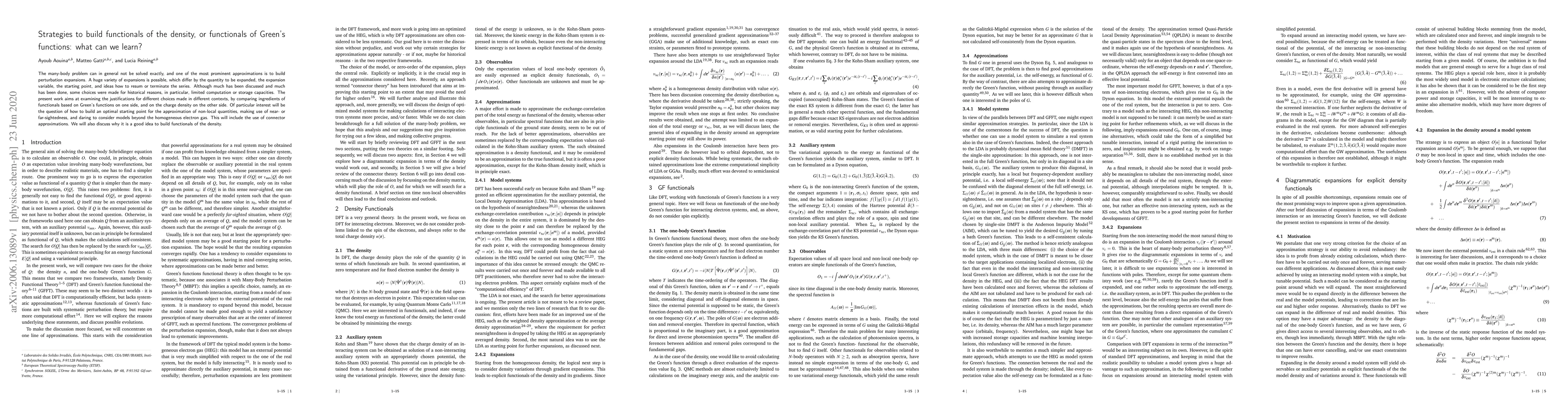 This paper explores various strategies for constructing approximations in many-body problems, comparing functionals based on Green's functions and charge density. It examines optimal starting points for non-local approximations, considering near- and far-sightedness, and models beyond the homogeneous electron gas, including connector approximations.