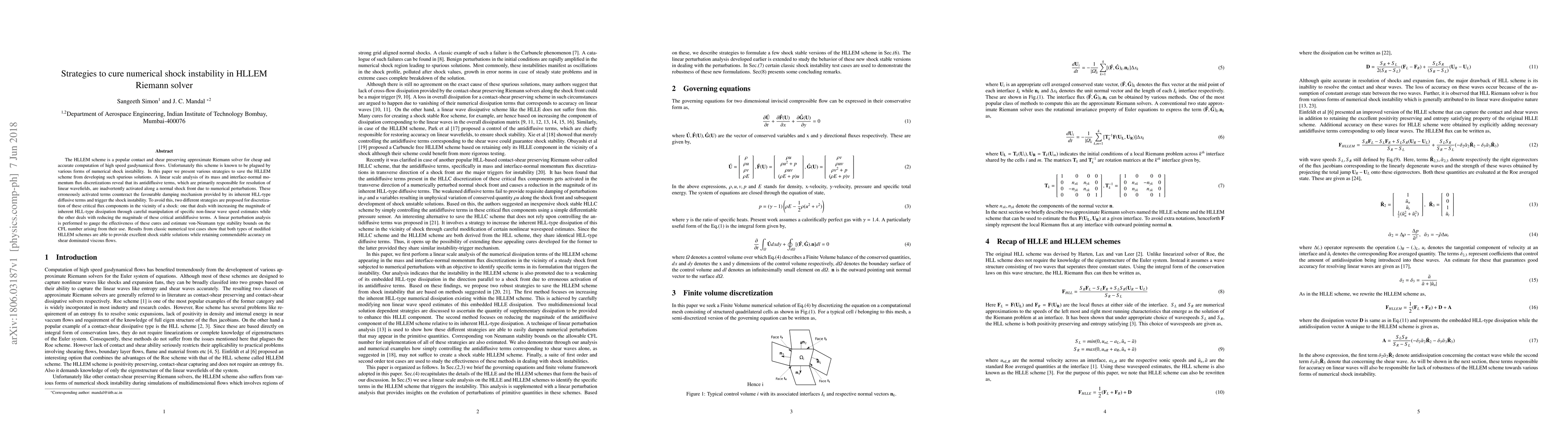 This paper proposes strategies to mitigate numerical shock instability in the HLLEM scheme, a contact and shear preserving Riemann solver for high-speed gas dynamics. The authors identify the inadvertent activation of antidiffusive terms along shock fronts as the root cause and suggest two approaches: enhancing inherent dissipation and reducing antidiffusive terms. Both methods are shown to stabilize shocks while maintaining accuracy for shear flows.